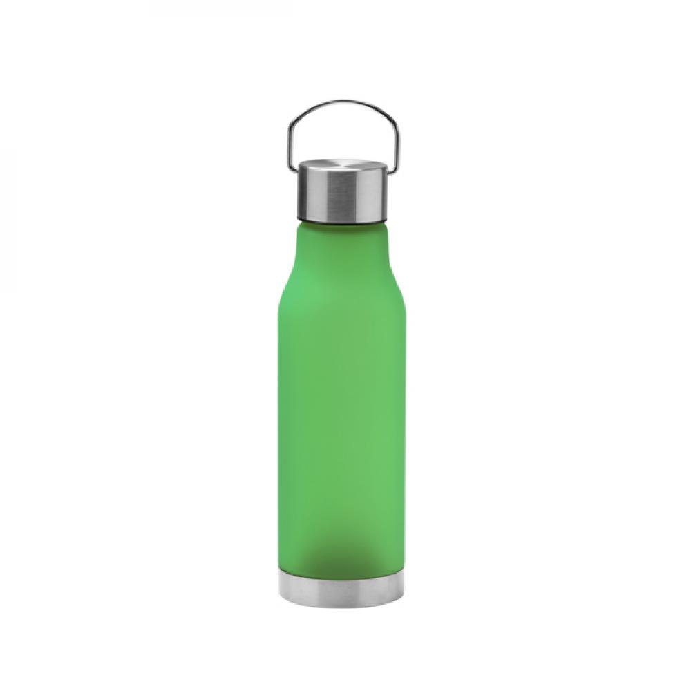 Флакон RPET с прозрачным матовым покрытием, крышкой, ручкой и дном из нержавеющей стали. Объем 600 мл. Упакован в эко-коробку.