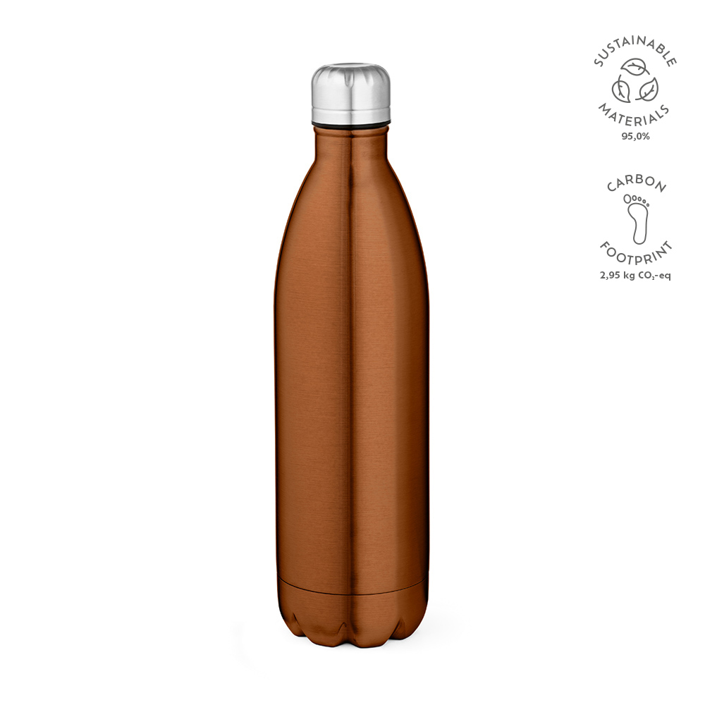 Бутылка из переработанной нержавеющей стали объемом 1100 мл (чистый объем 1070 мл) - это блестящий акцент. Она экологична и подходит для мытья в посудомоечной машине. Герметичный дизайн избавляет от беспокойства о протекании, а двойные стенки гарантируют оптимальную температуру напитков.
