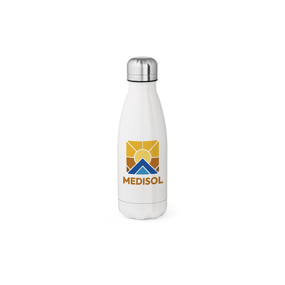 Эта переработанная бутылка из нержавеющей стали объемом 430 мл (400 мл нетто) готова к полноцветной сублимационной печати. Она безопасна для использования в посудомоечной машине и не протекает. Двойные стенки добавляют практичности. Выражайте себя, употребляя напитки устойчиво.