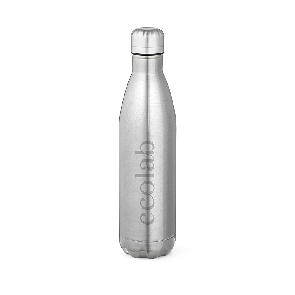 Оставайтесь освежёнными с нашей переработанной бутылкой из нержавеющей стали объёмом 810 мл (770 мл нетто) с блестящим корпусом. Она удобна в использовании благодаря своим свойствам: можно мыть в посудомоечной машине и не протекает, а двойные стенки только добавляют удобства.