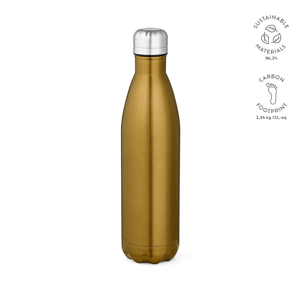 Оставайтесь освежёнными с нашей переработанной бутылкой из нержавеющей стали объёмом 810 мл (770 мл нетто) с блестящим корпусом. Она удобна в использовании благодаря своим свойствам: можно мыть в посудомоечной машине и не протекает, а двойные стенки только добавляют удобства.