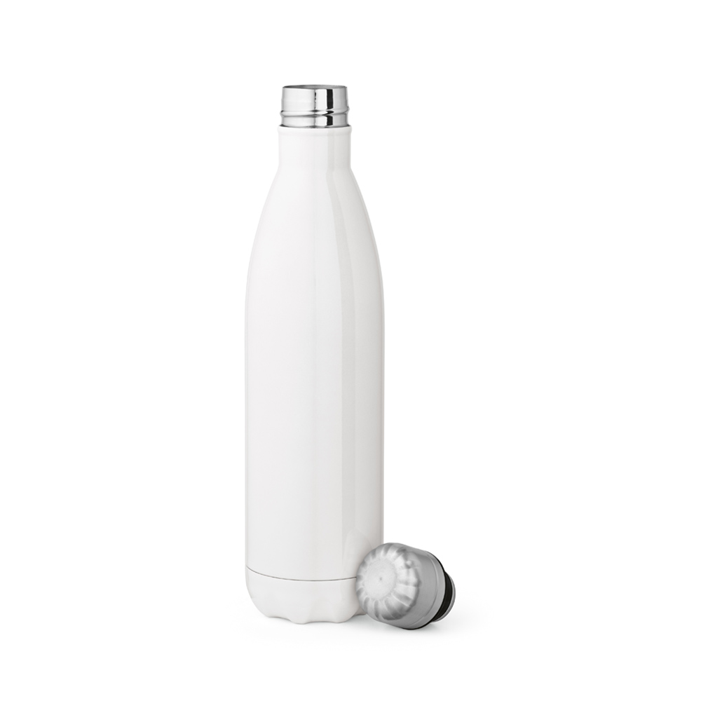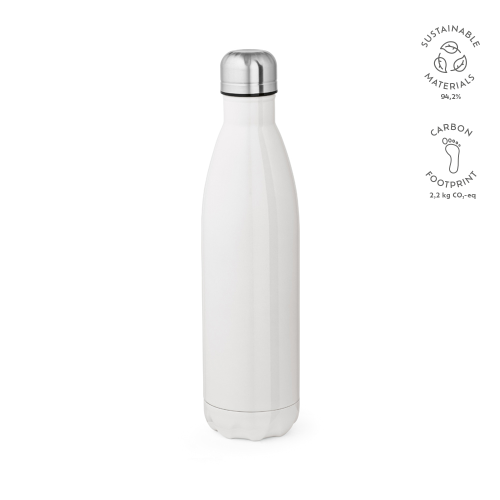 Оставайтесь освежёнными с нашей переработанной бутылкой из нержавеющей стали объёмом 810 мл (чистый объём 770 мл), готовой для нанесения логотипов методом полноцветной сублимации. Благодаря двойным стенкам, бутылка не протекает и подходит для мытья в посудомоечной машине, что добавляет удобства в использовании.