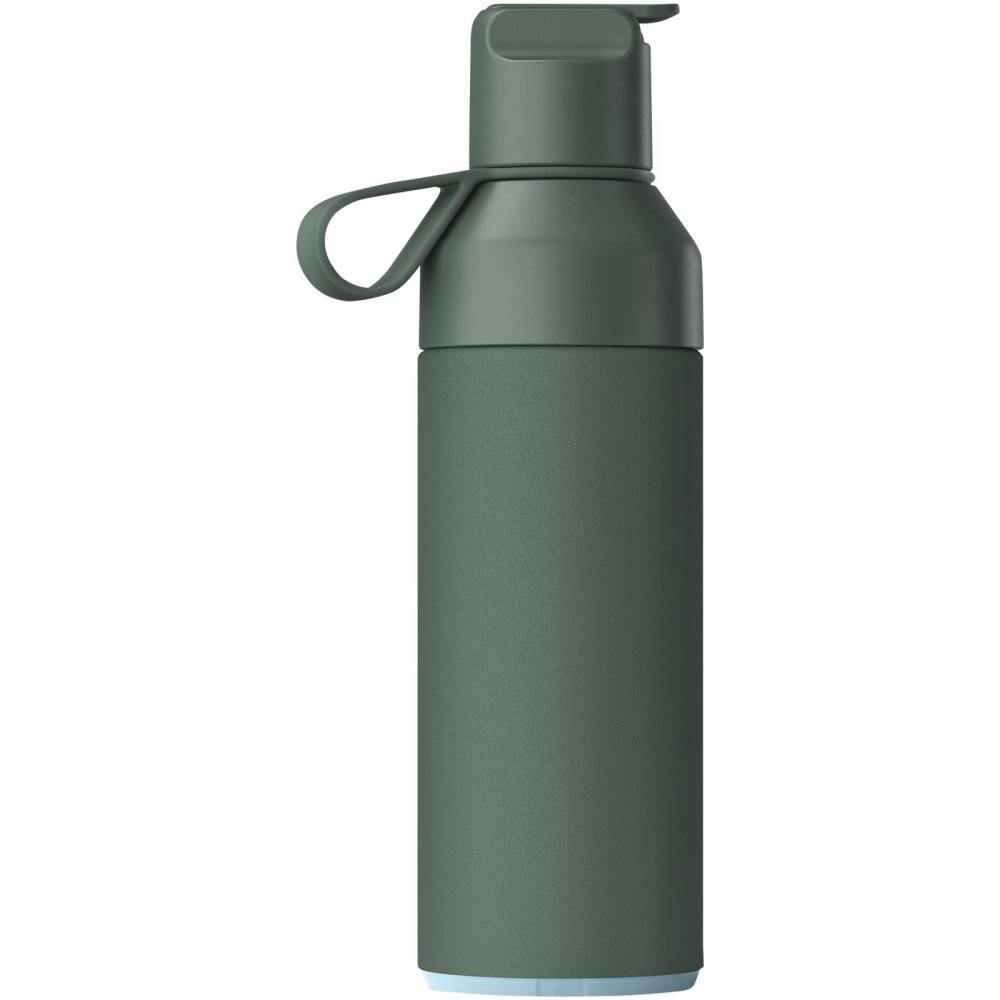 Бутылка Ocean Bottle GO объемом 500 мл имеет вакуумную изоляцию, которая сохраняет напитки холодными до восемнадцати часов, и оснащена функцией двойного открытия, что делает её идеальной для использования в движении. Бутылка имеет герметичную крышку и обеспечивает легкий доступ для наполнения, чистки и добавления льда. Бутылка GO сочетает в себе все лучшие черты оригинальной Ocean Bottle, но имеет более спортивный дизайн, позволяющий пить одной рукой. Каждая бутылка Ocean Bottle полностью углеродно-нейтральна и собирает 1000 пластиковых бутылок для улучшения условий жизни в прибрежных сообществах. Бутылка изготовлена из 90% переработанной нержавеющей стали и других переработанных материалов. Из-за силиконовой трубочки бутылка GO может использоваться только для холодных напитков. Поставляется в подарочной коробке из переработанного картона, полученного из ответственных источников.