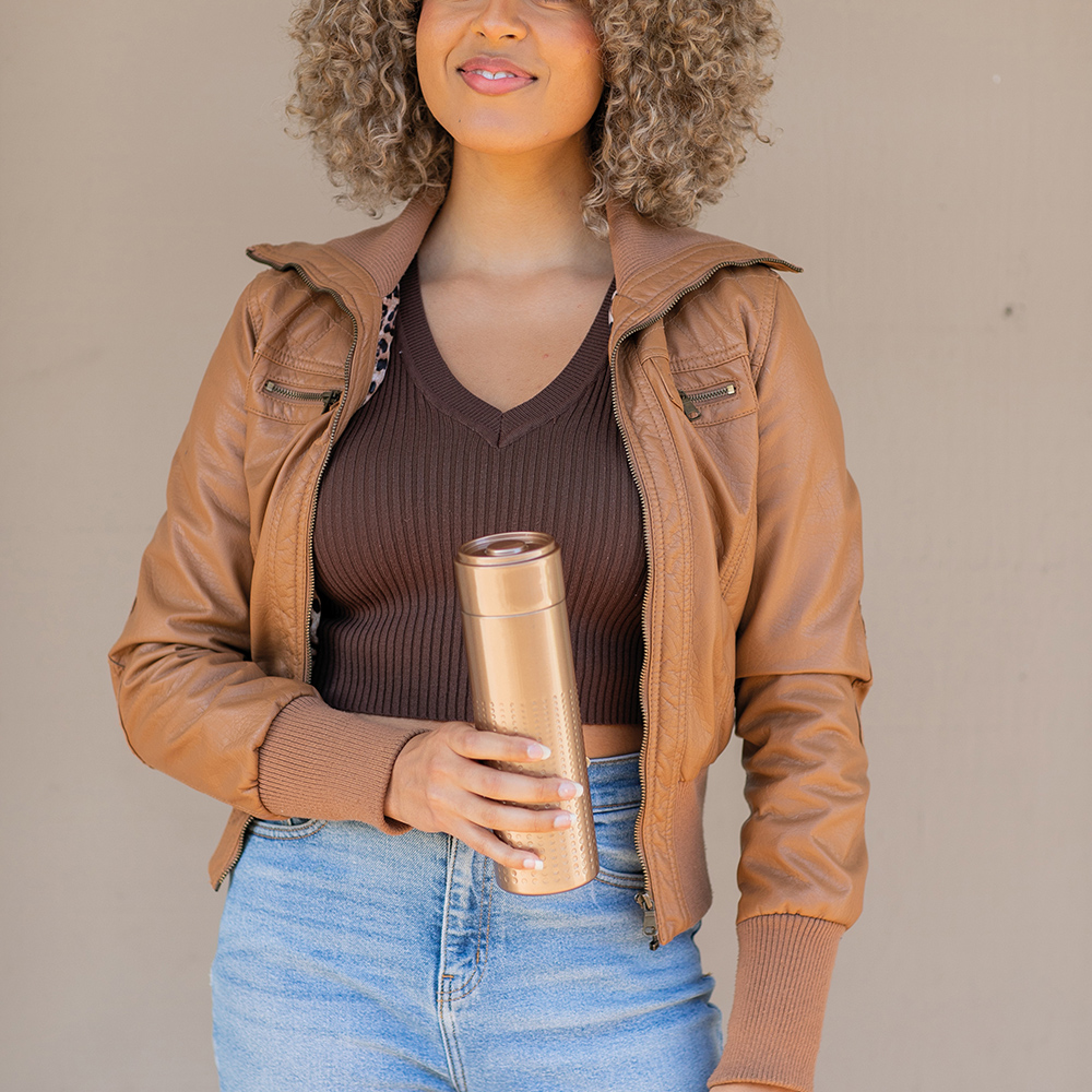 Откройте для себя устойчивость с нашей бутылкой из переработанной нержавеющей стали объемом 540 мл (500 мл нетто). Двойные стенки украшены уникальным узором. Изготовленная из переработанной нержавеющей стали, она является вашим экологически осознанным выбором для поддержания свежести.