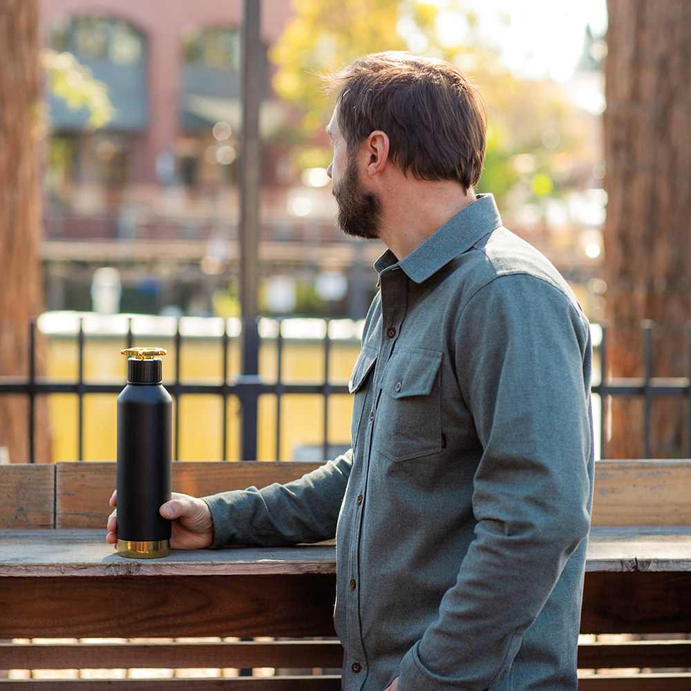Примите стиль грубой элегантности с нашей бутылкой из переработанной нержавеющей стали объемом 780 мл (750 мл нетто) с двойными стенками. Инновационная крышка добавляет изюминку, а лазерная гравировка придает уникальность. Устойчивость сочетается с надежным дизайном для ваших ежедневных приключений.