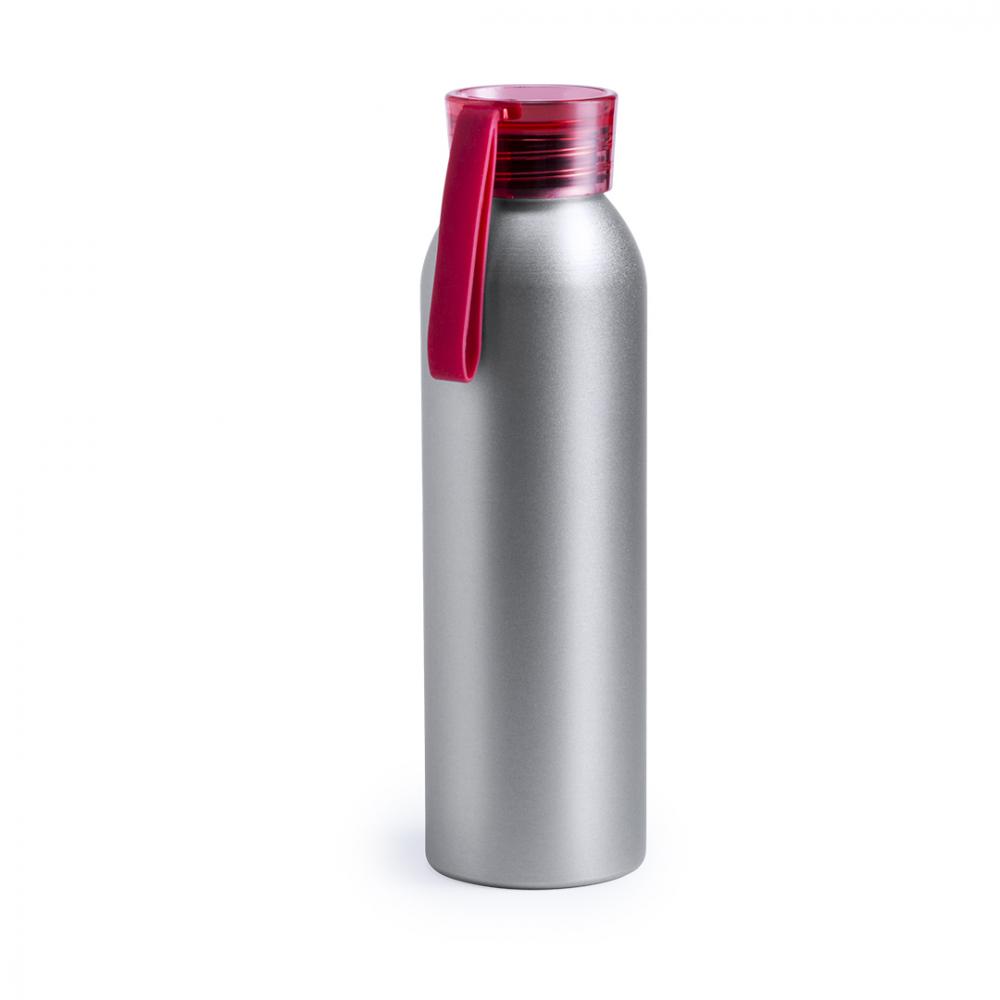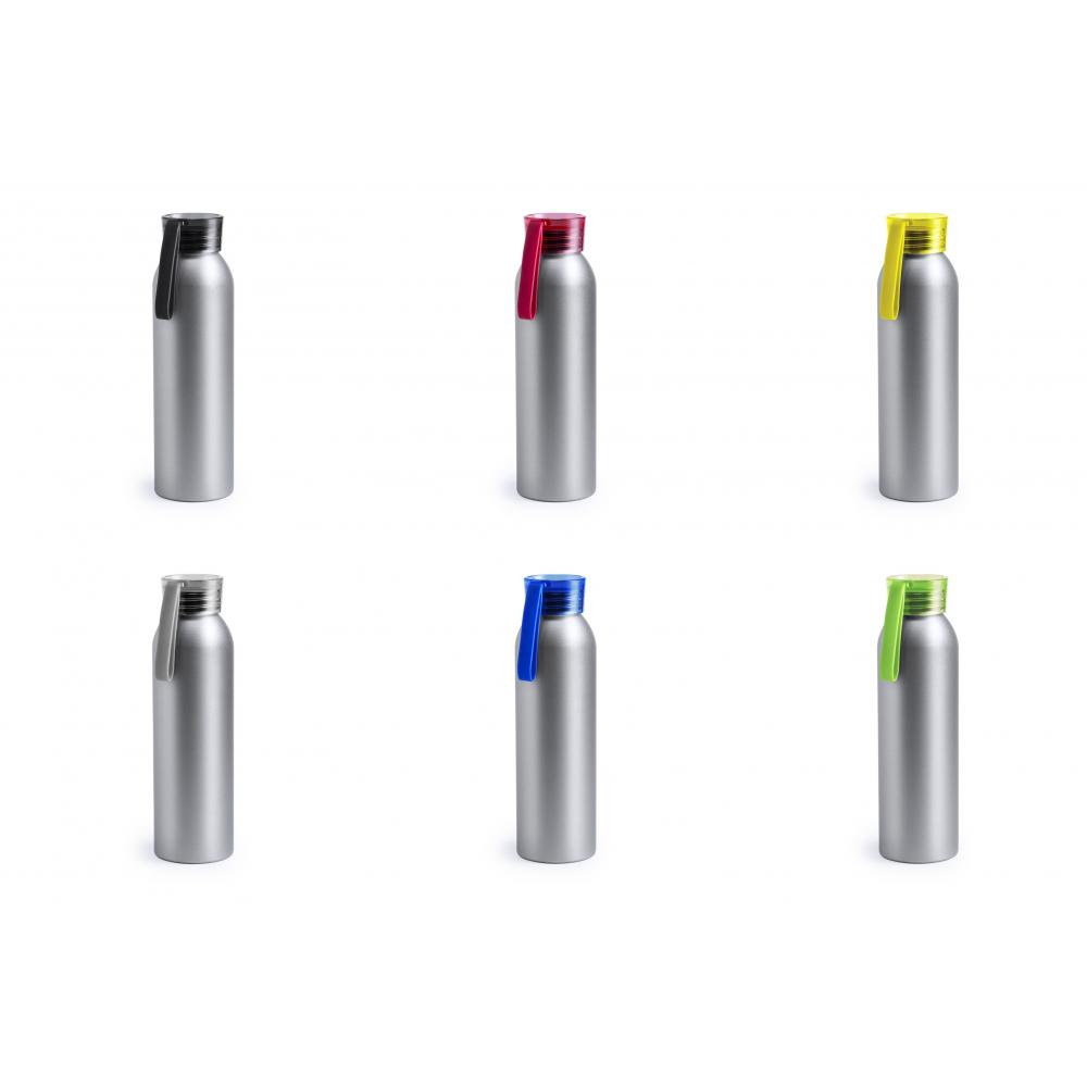 Особенности бутылка емкостью 650 мл из алюминиевого материала. Корпус серебристого цвета, с завинчивающейся защитной крышкой в широкой гамме прозрачных цветов. Ремешок для переноски из материала TPR соответствующего цвета. 650 мл