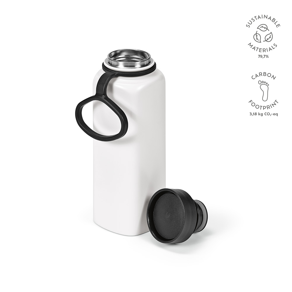 Пейте с удовольствием с нашей переработанной бутылкой из нержавеющей стали объемом 820 мл (750 мл чистого объема). Никаких протечек, только чистое удовольствие. Открывайте и пейте под любым углом благодаря крышке на 360°. Двойные стенки сохранят ваш напиток холодным или горячим. Закажите свою сейчас для экологичного потребления.