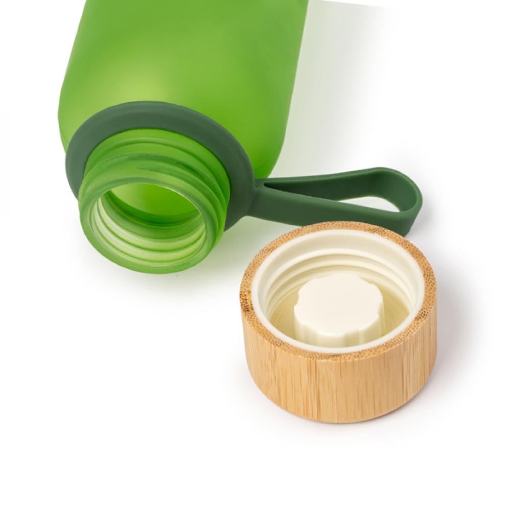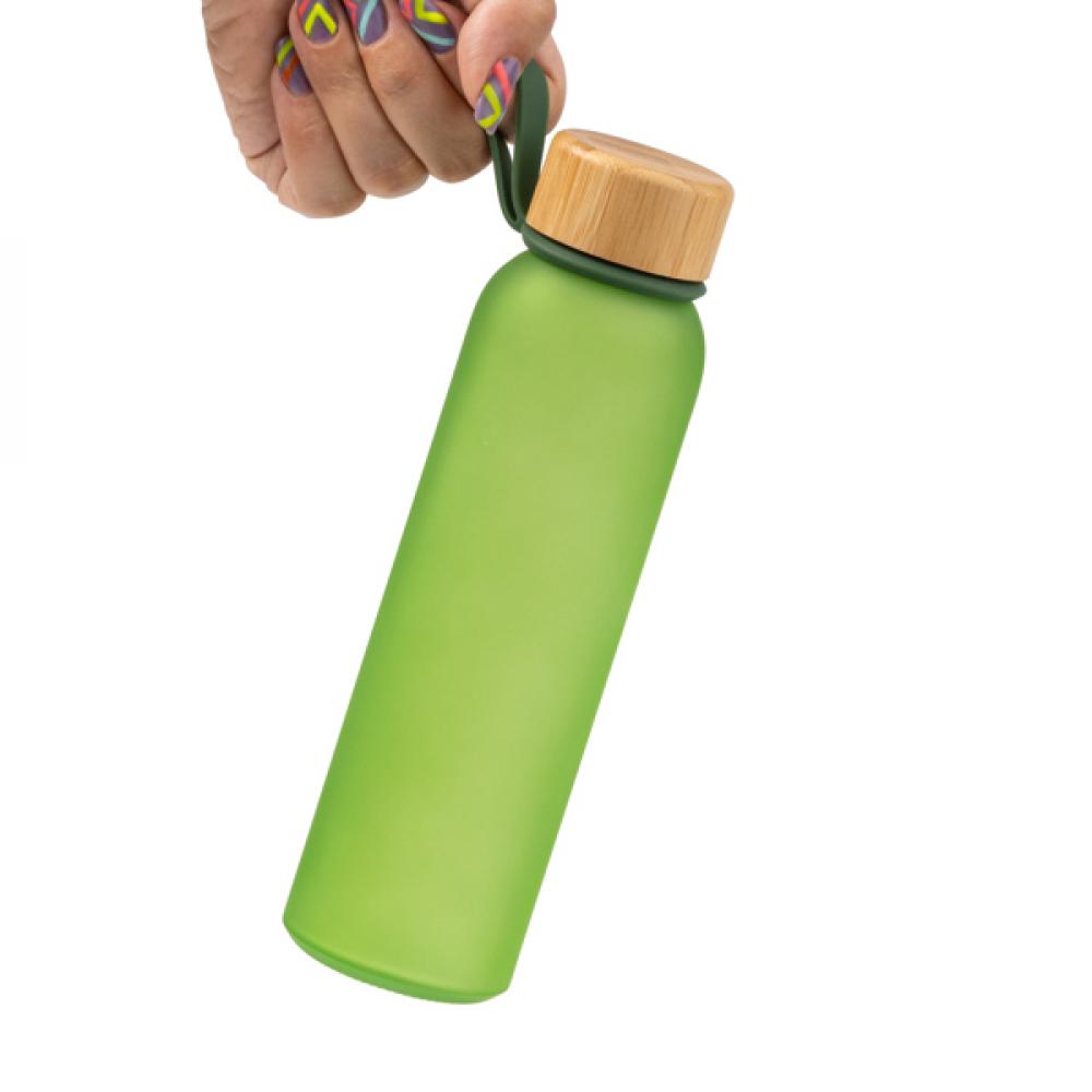 Прозрачная бутылка из переработанного стекла. Верх и ручка для переноски из бамбука. Объем: 500 мл. Поставляется в экологически дизайнерской коробке.