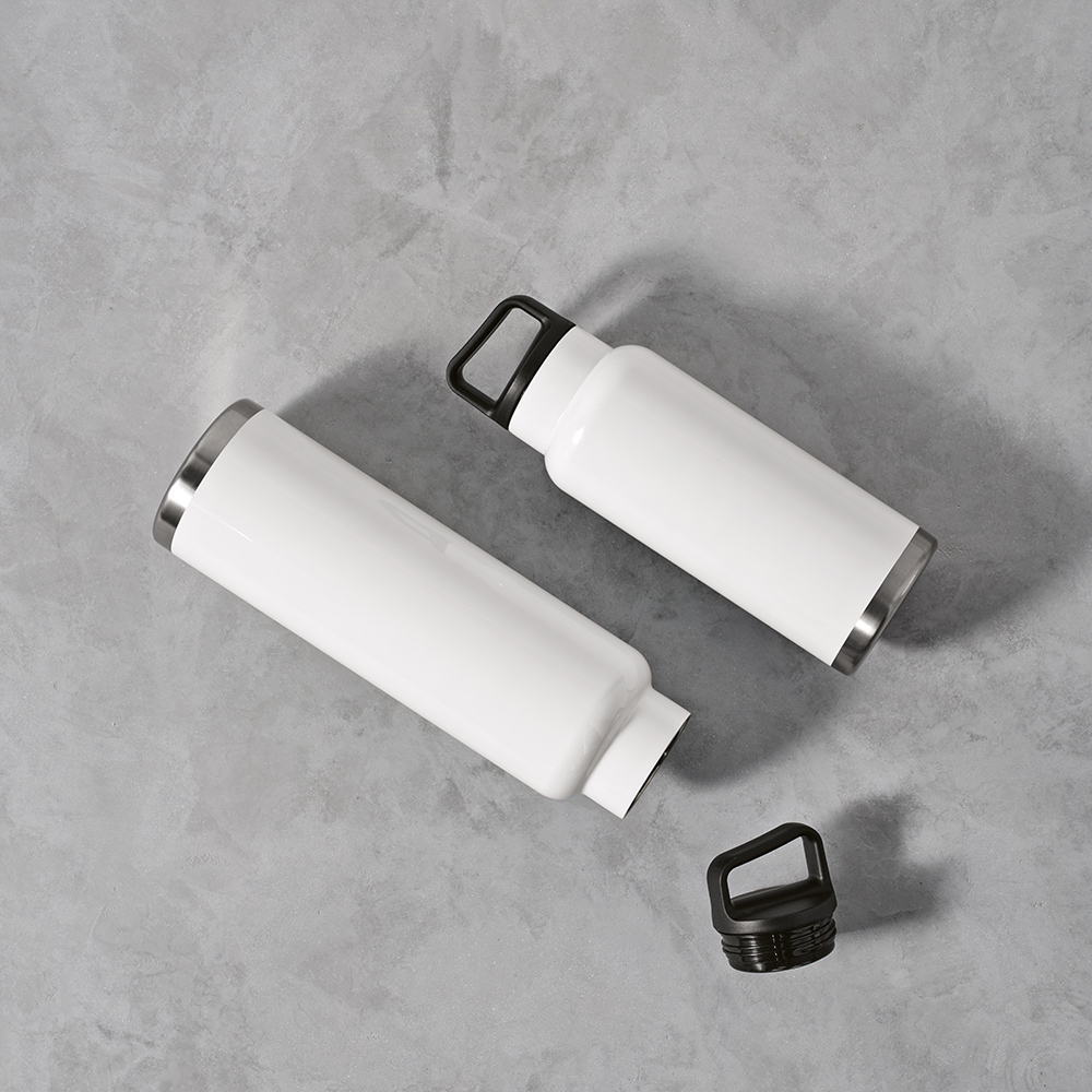 Познакомьтесь с вашим экологичным партнером по гидратации, готовым к полноцветной сублимационной печати – бутылкой из переработанной нержавеющей стали объемом 1620 мл (1500 мл нетто). Она не протекает и оснащена усиленным карабином для удобной транспортировки. Наслаждайтесь вашими напитками благодаря конструкции с двойными стенками.