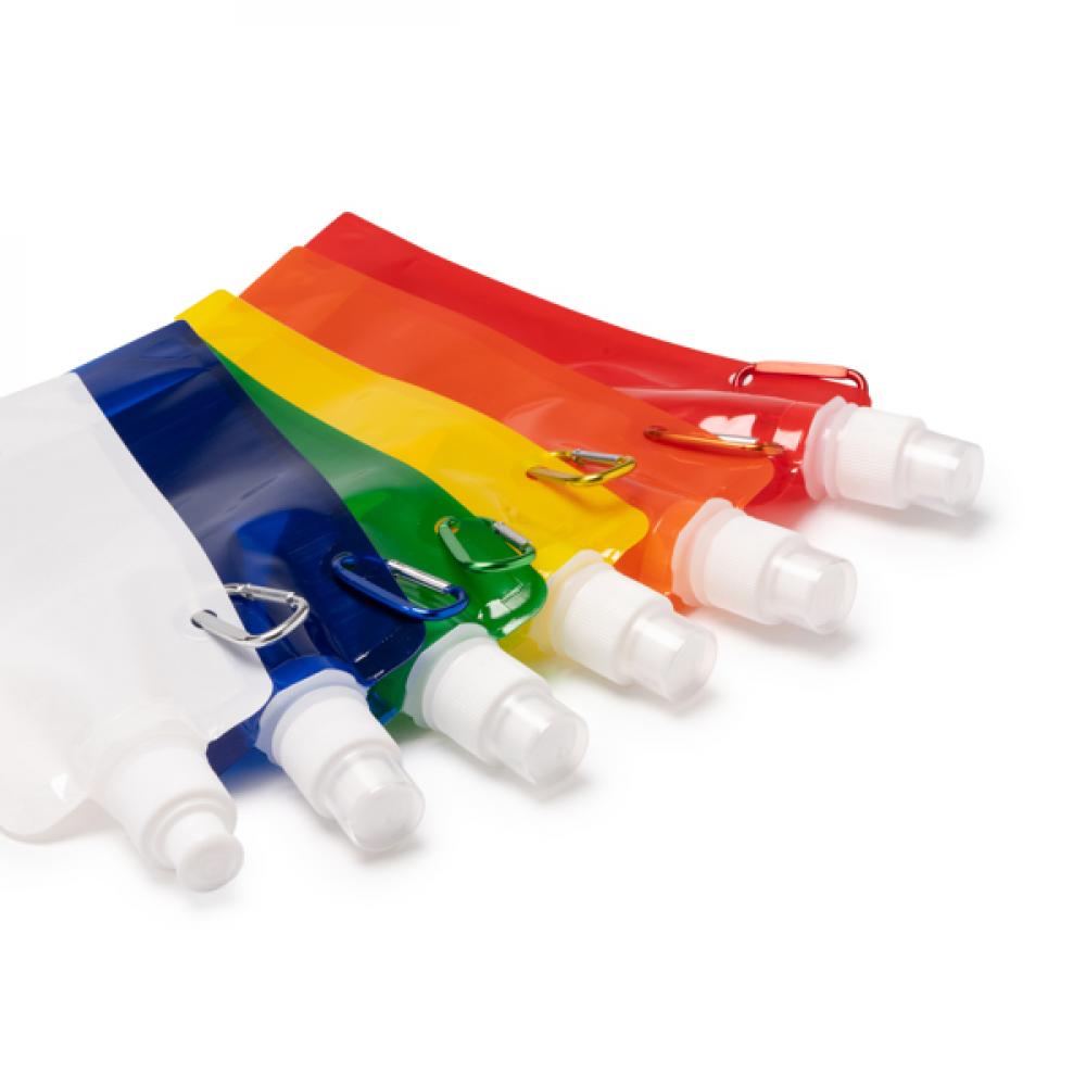 Складная бутылка с удлиненной винтовой крышкой. В комплекте алюминиевый карабин. Объем: 400 мл.