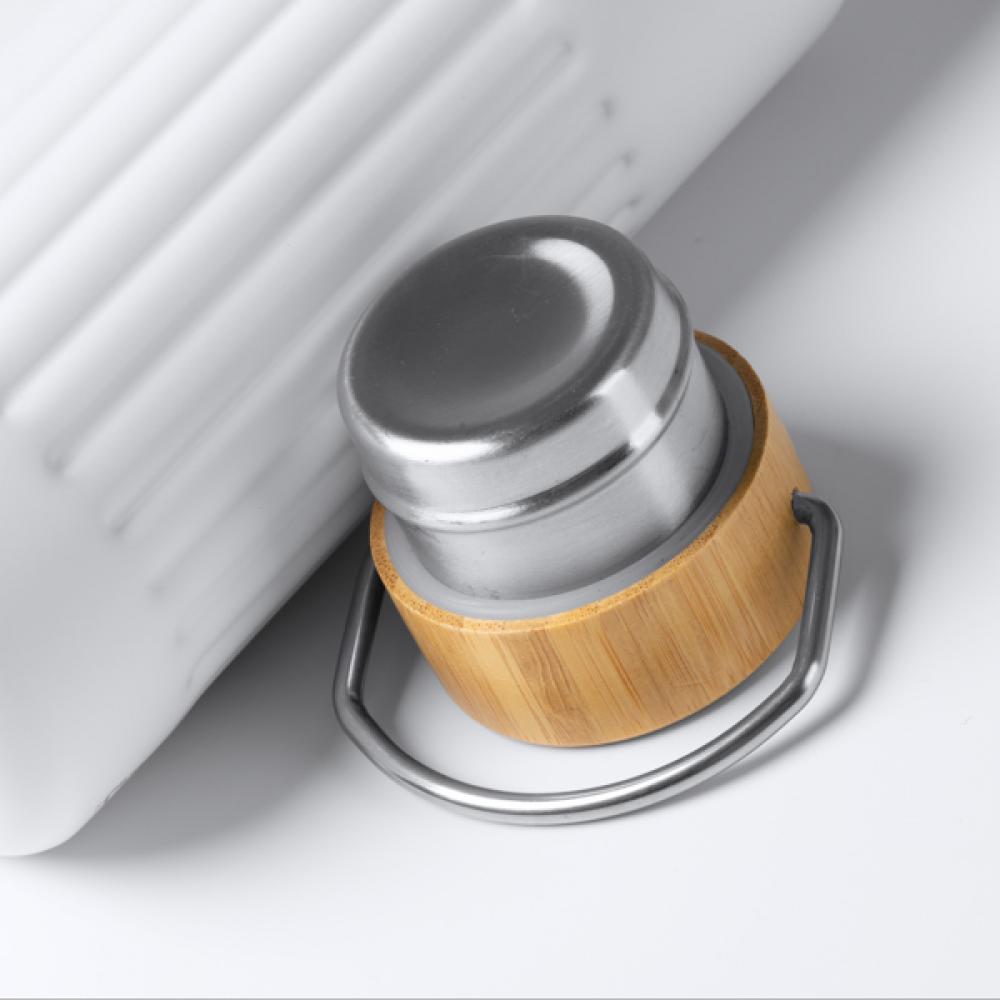 Термос в переработанной нержавеющей стали 304 с двойными стенками и скособоченным дизайном, а также с крышкой из бамбука. Объем: 500 мл. Поставляется в экологичной упаковке.