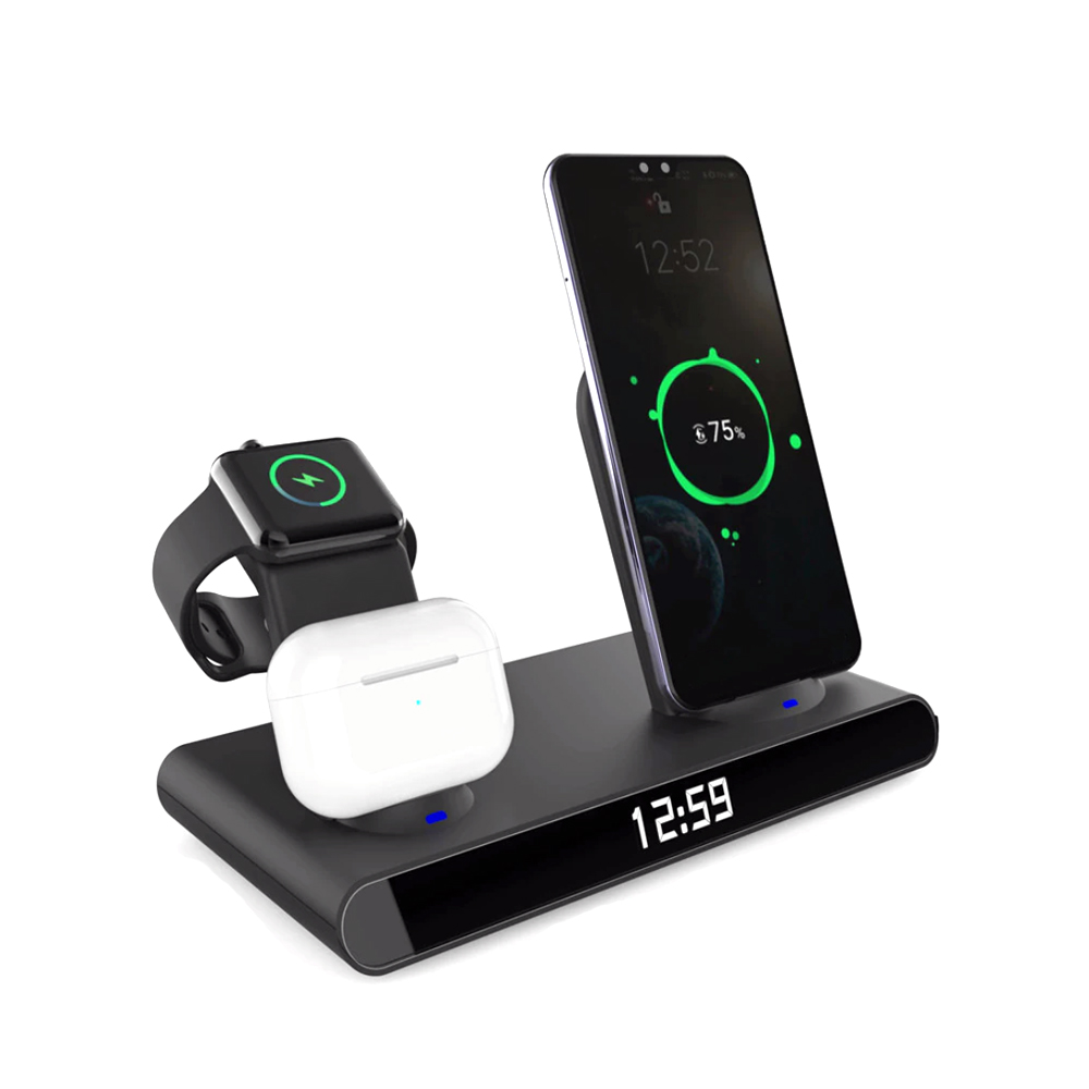 Часы электронные Abbatt мультифункциональные с беспроводной зарядкой мощностью 10W. Особенность этих электронных часов заключается в том, что они выполянют функцию не только часов и будильника, а еще с их помощью можно заряжать свои гаджеты. Удобство беспроводной зарядки говорит само за себя - очень комфортно заряжать смартфон, часы и наушники, просто положив их на зарядную станцию, не подключая при этом к ним никаких кабелей. Также есть возможность быстрой зарядки Qi. При беспроводной зарядке устройство меньше подвержено перепадам в сети, чем при подключении к розетке, тем самым увеличивается срок службы аккумулятора. Благодаря интерфейсу Type-C (шнур идёт в комплекте 1м) ваши гаджеты будут заряжаться более эффективно, а главное - одновременно. Вы можете смотреть фильмы, слушать музыку, звонить или отправлять сообщения во время всего процесса зарядки. Входы: 9V/2A 12/2A. Выходы: Беспроводной 10W / 7.5W / 5W / USB 5V / 0.8-1A / Airpod 3W / Apple watch 2.5W. Совместимость с Apple 8 и выше.