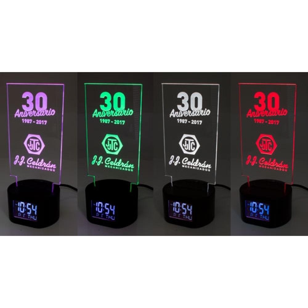 ОСВЕТИТЕ ВАШУ РЕКЛАМУ! СВЕТОВОЙ ЛОГОТИП НА ЧАСАХ. ЯРКИЙ БУДИЛЬНИК, ИДЕАЛЬНО ПОДХОДЯЩИЙ ДЛЯ ВАШЕЙ РЕКЛАМЫ, БЛАГОДАРЯ СВЕТОДИОДНОЙ ПОДСВЕТКЕ, КОТОРАЯ ОТРАЖАЕТ РАЗЛИЧНЫЕ ЦВЕТА НА МЕТАКРИЛАТНОЙ ПЛАСТИНЕ. РЕЖИМ ФИКСИРОВАННОГО ЦВЕТА С 5 ЦВЕТАМИ: ЗЕЛЕНЫЙ, КРАСНЫЙ, СИНИЙ, РОЗОВЫЙ И БЕЛЫЙ. РЕЖИМ СЛУЧАЙНОГО ЦВЕТА С 2 СКОРОСТЯМИ. С ФУНКЦИЕЙ БУДИЛЬНИКА, ОТОБРАЖЕНИЕМ ДАТЫ И ВРЕМЕНИ.