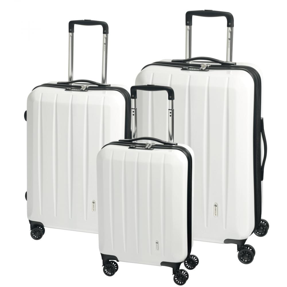 Чемодан LONDON 2.0, 3 штуки: эксклюзивное оснащение и дизайн, упаковка на обоих уровнях, основное отделение с разделителем и сетчатыми карманами, запираемая алюминиевая система чемодана, 4 плавно работающих двойных колеса-спиннера с поворотом на 360°, включая TSA 3-значный кодовый замок