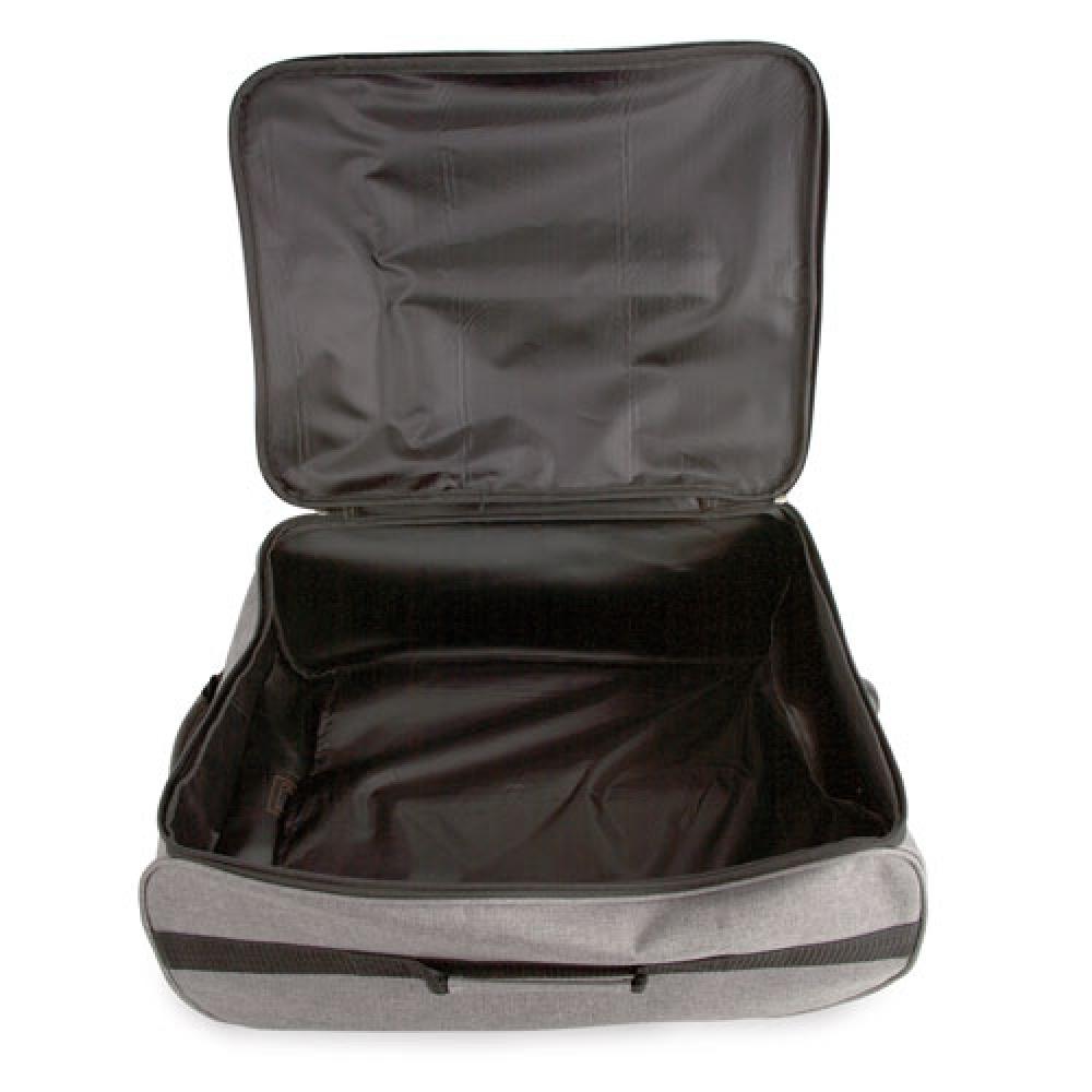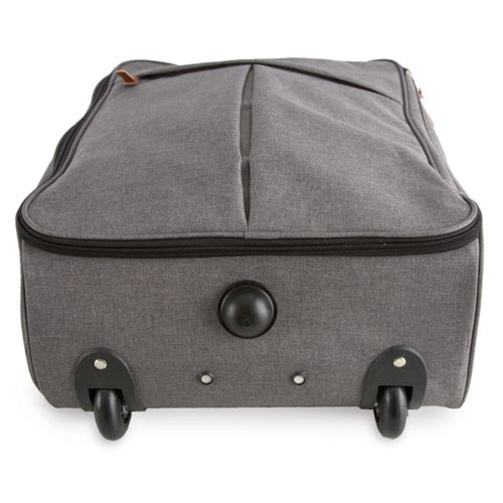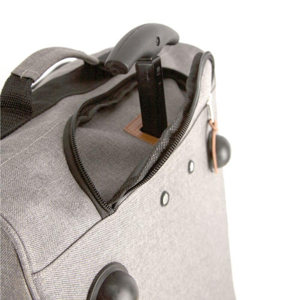 Современная тележка от фирмы Pierre Delone с мраморной тканью и аппликациями из кожзаменителя верблюжьего цвета. Оснащена двумя колесами и несколькими защитными упорами на опорных базах. Отличается большой вместимостью и легкостью.