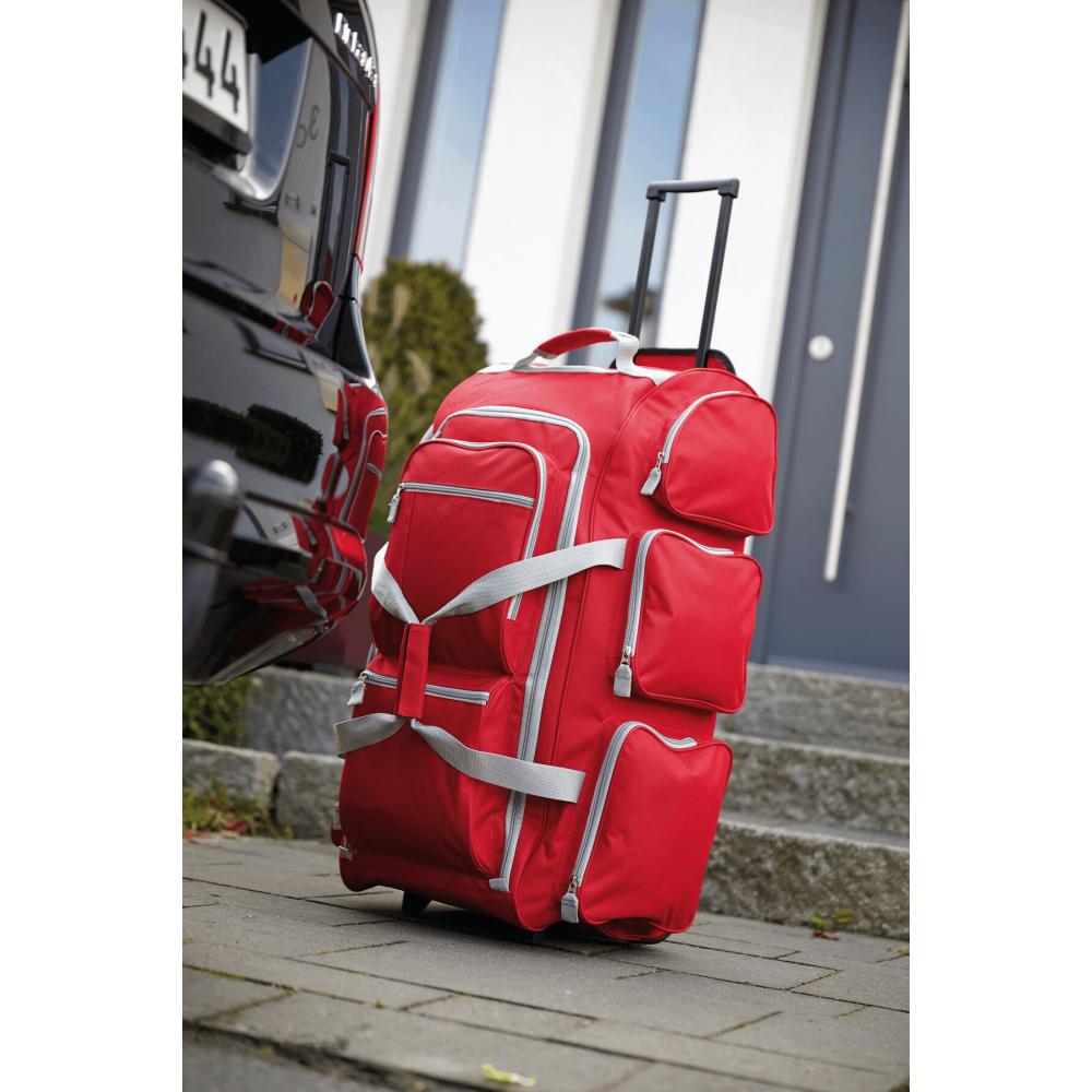 Дорожная сумка-тележка 9P: 3 передних кармана на молнии, просторное основное отделение на молнии с 3 дополнительными отделениями на молнии, 1 отделение на молнии сзади, 1 ручка для переноски с мягкой подкладкой, тележка убирается в отдельный карман на молнии, удобные для бега колеса конькобежца с угловыми ограничителями , 2 противоскольжения и ножки - множество отсеков упрощают организацию багажа