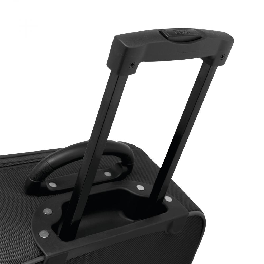 Чемодан на колесиках GALWAY: основное отделение на молнии с мягкой обивкой и дополнительным отделением на молнии, 2 отделения на молнии и сменная металлическая пластина спереди, адресный карман сзади, ручка для переноски, запираемая телескопическая система тележек, 2 легко движущихся колеса конькобежца с угловые ограждения и опорные ножки