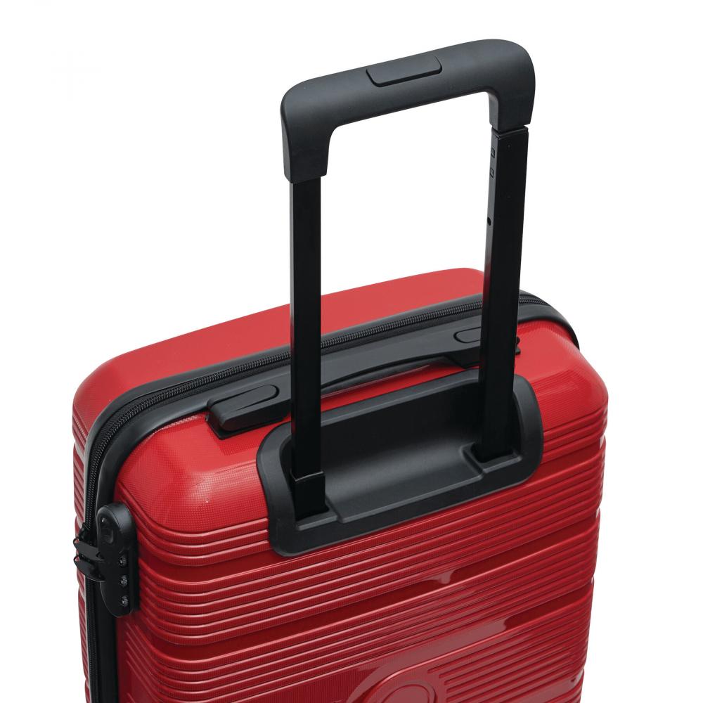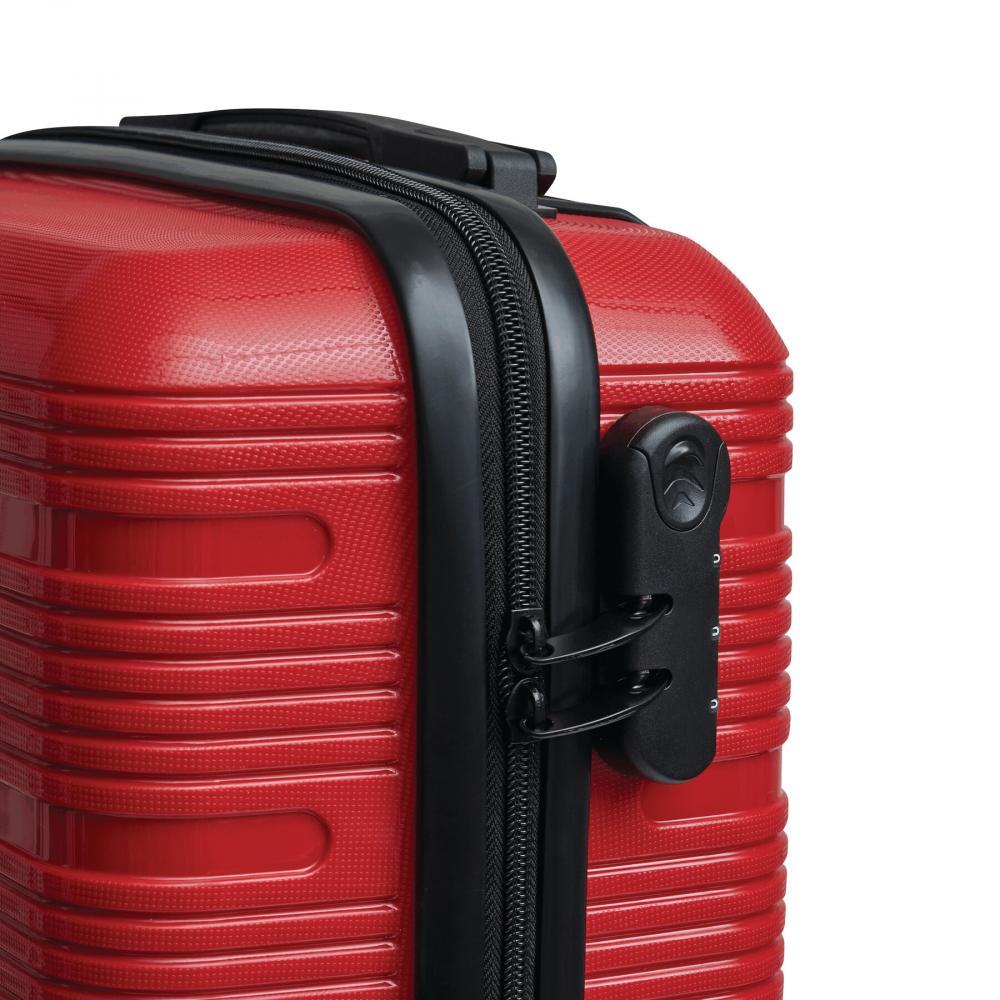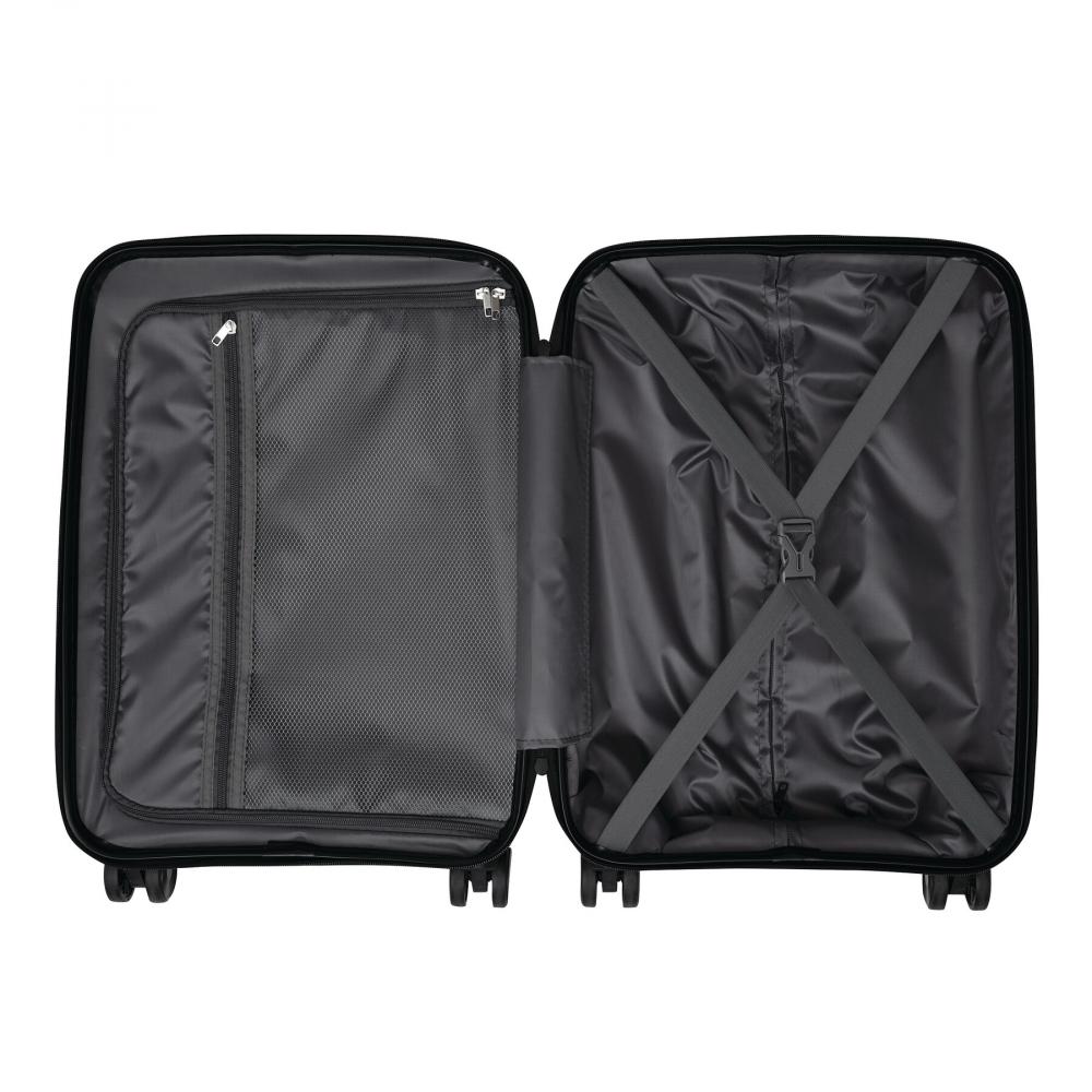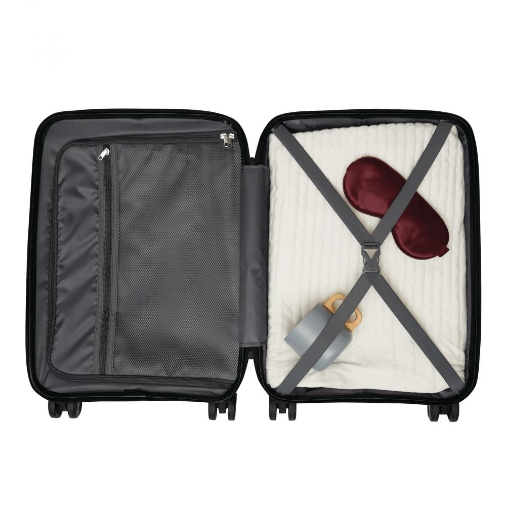 Чемодан YORK: изготовлен из особо прочного материала, упаковка на обоих уровнях, с сетчатым карманом на молнии и эластичной упаковочной лентой, телескопическая система чемодана с замком, ручка для переноски, 4 плавно вращающихся 360° двойных колеса, сменная металлическая табличка с логотипом на передней части, кодовый замок – размер подходит для бюджетных авиалиний