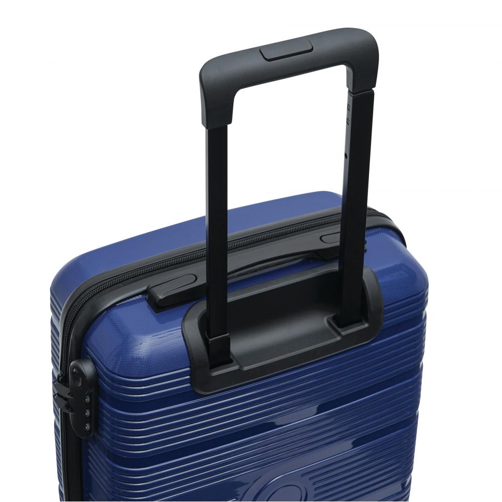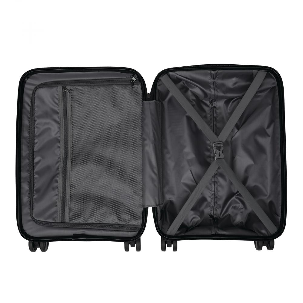 Чемодан YORK: изготовлен из особо прочного материала, упаковка на обоих уровнях, с сетчатым карманом на молнии и эластичной упаковочной лентой, телескопическая система чемодана с замком, ручка для переноски, 4 плавно вращающихся 360° двойных колеса, сменная металлическая табличка с логотипом на передней части, кодовый замок – размер подходит для бюджетных авиалиний