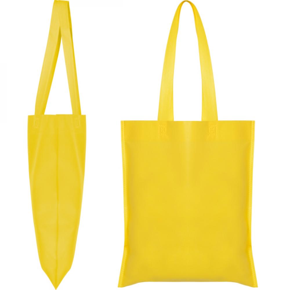 Термозапечатанная сумка без ластовицы, из нетканого материала, с длинной ручкой того же цвета.