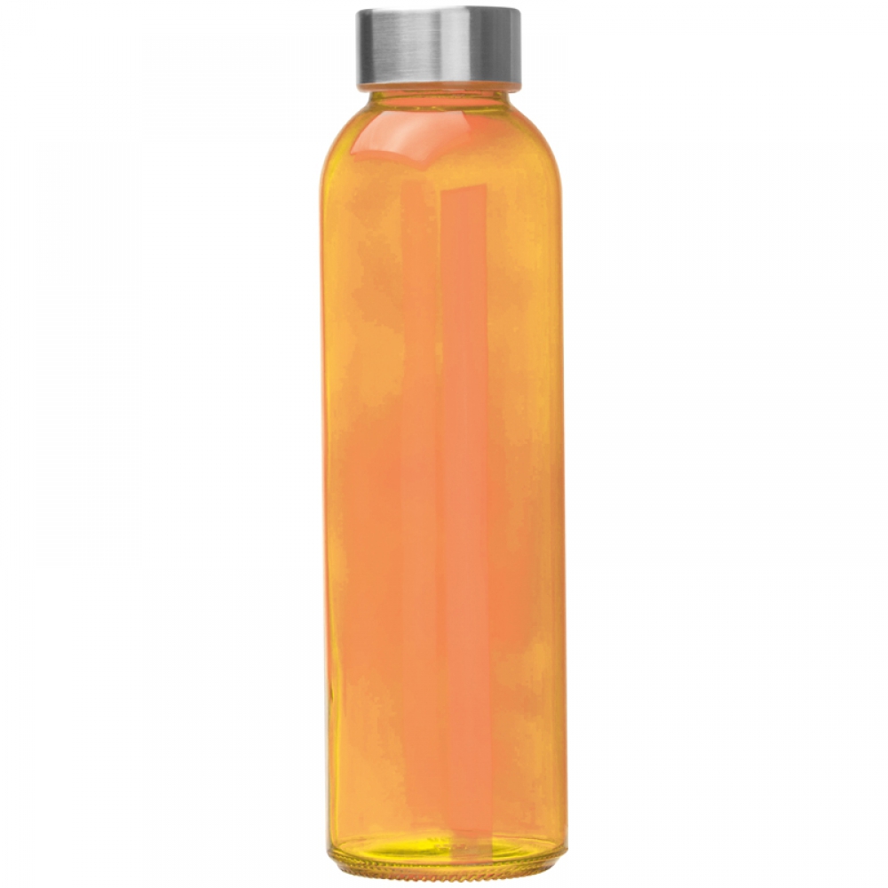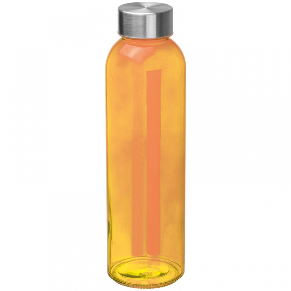 Модная бутылка (500 мл) из цветного стекла с крышкой из нержавеющей стали. Логотип можно выгравировать на крышке.