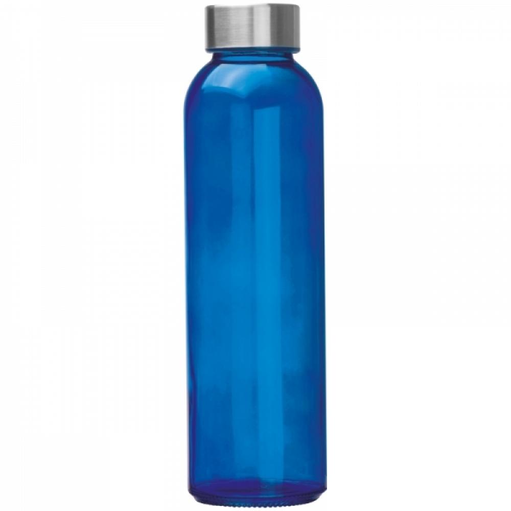 Модная бутылка емкосью 550 мл, из цветного стекла с крышкой из нержавеющей стали. Логотип можно выгравировать на крышке.
