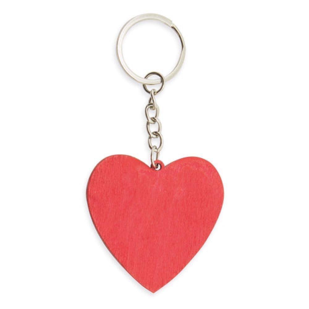 Оригинальный брелок, выполненный из натурального дерева, в форме сердца, представлен в двух разных оттенках: с одной стороны дерево, с другой стороны красный цвет.