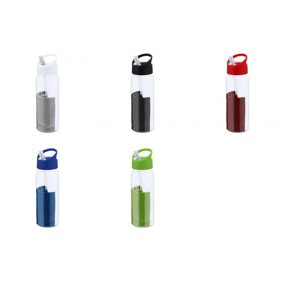 Набор бутылки и полотенца из RPET. Бутылка объемом 800 мл с удобной системой открытия без содержания бисфенола А с диспенсером для соломки и соответствующей ручкой для транспортировки, а также полотенце размером 30х80 см. Материал RPET изготовлен из переработанного пластика, поэтому способствует повторному использованию пластиковых отходов и помогает устойчивости планеты.