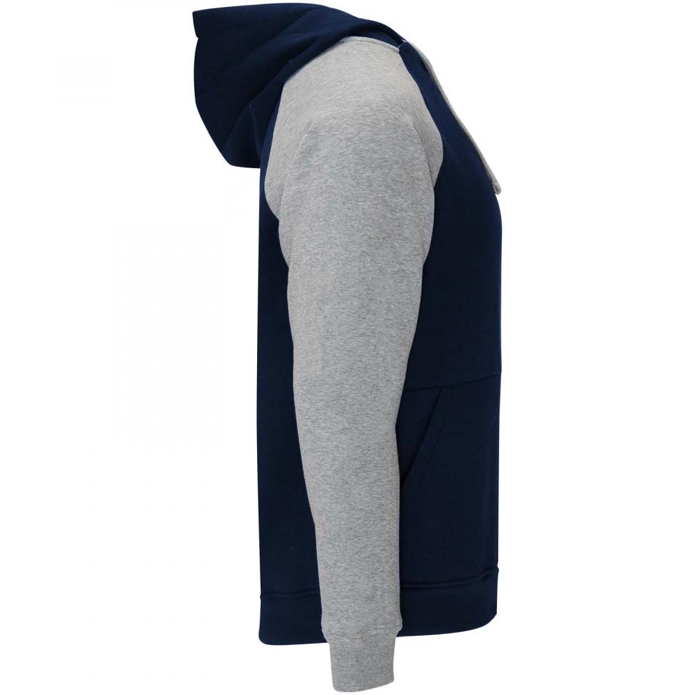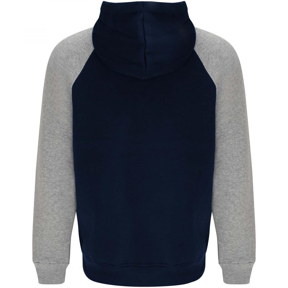 Двухцветное унисекс худи. Капюшон с перекрещенным воротом и металлическими люверсами. Контрастная внутренняя часть капюшона, шнурок и рукава реглан. Карман-кенгуру. Манжеты и подол из эластичного трикотажа 1x1. Съемная этикетка.
