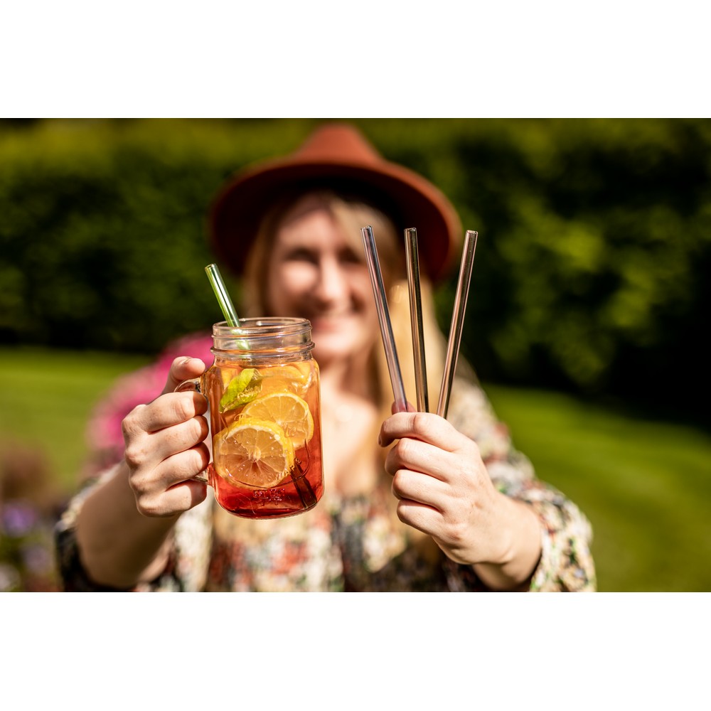 Набор из 4 стеклянных питьевых трубочек B'RIGHT, многоразовых, в комплекте с щеткой для чистки и тарелкой для персонализации.