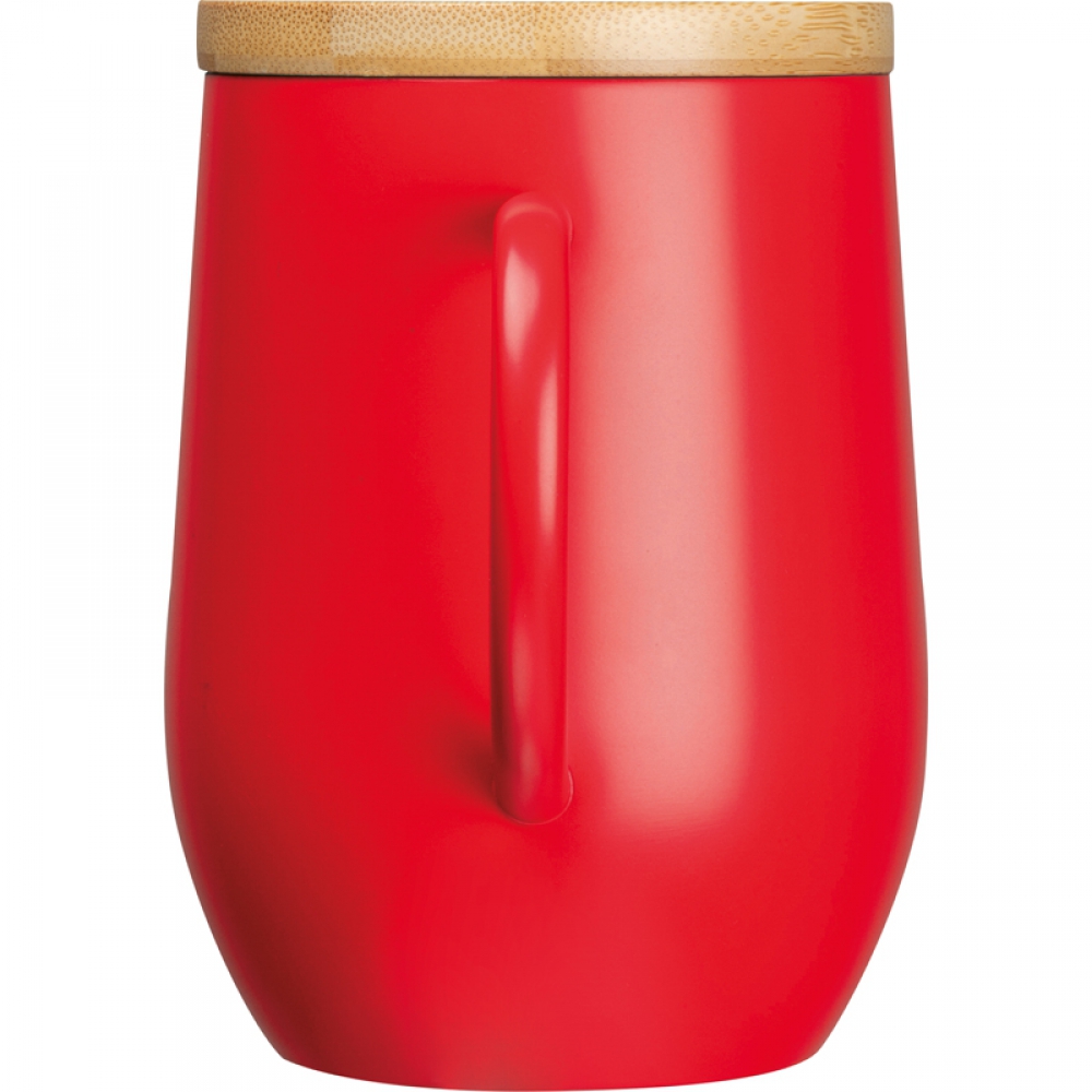 Двустенная кружка из нержавеющей стали с ручкой, бамбуковой крышкой и объемом 300 мл.