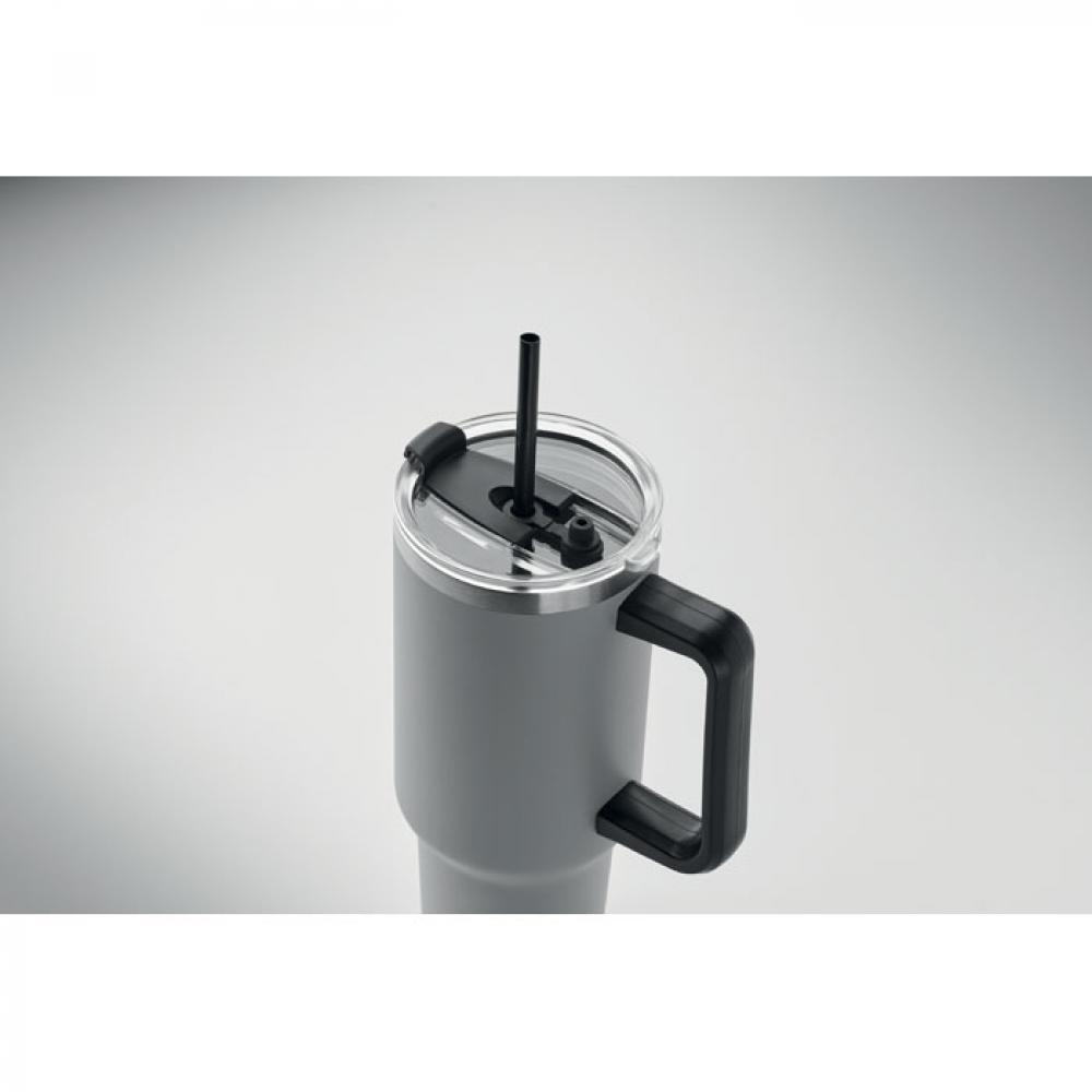 Термокружка с двойными стенками из переработанной нержавеющей стали 90% и 10% нержавеющей стали с герметичной крышкой и соломинкой. Объем 1200 мл.