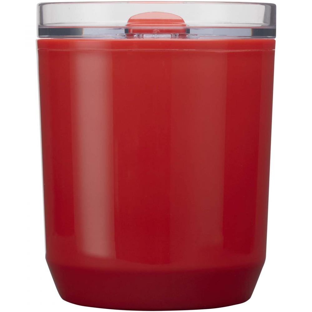 Термокружка с простым дизайном, подходящая для большинства кофемашин и автомобильных подстаканников. Имеет двойные стенки с внешней частью из переработанного полипропилена и внутренней частью из полипропилена. Сдвижная крышка изготовлена из пластика AS и полипропилена. Объем: 180 мл.