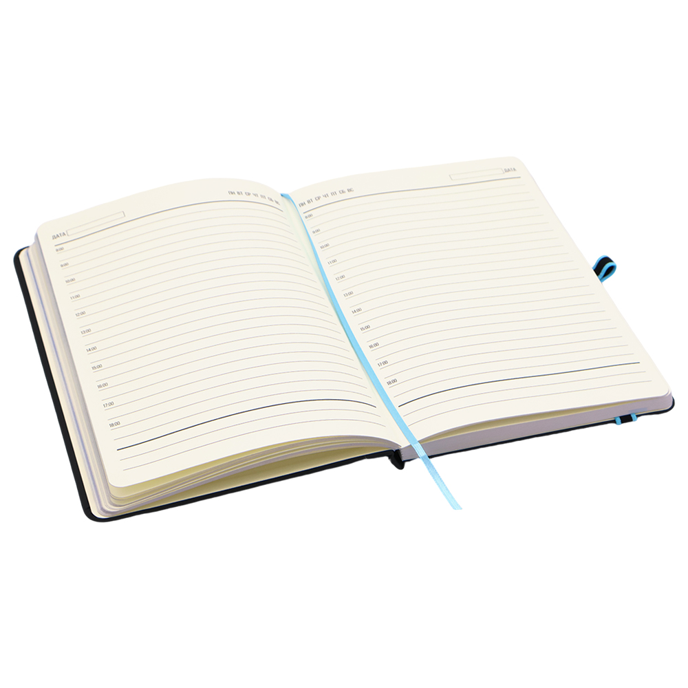 Ежедневник Sir Lewis — выполнен в твердой обложке. Имеет удобную, широкую резинку (1 см.) и держатель для ручки с ярким акцентом. Закладка и край — также в акцентном цвете. В начале ежедневника страничка с личными данными.