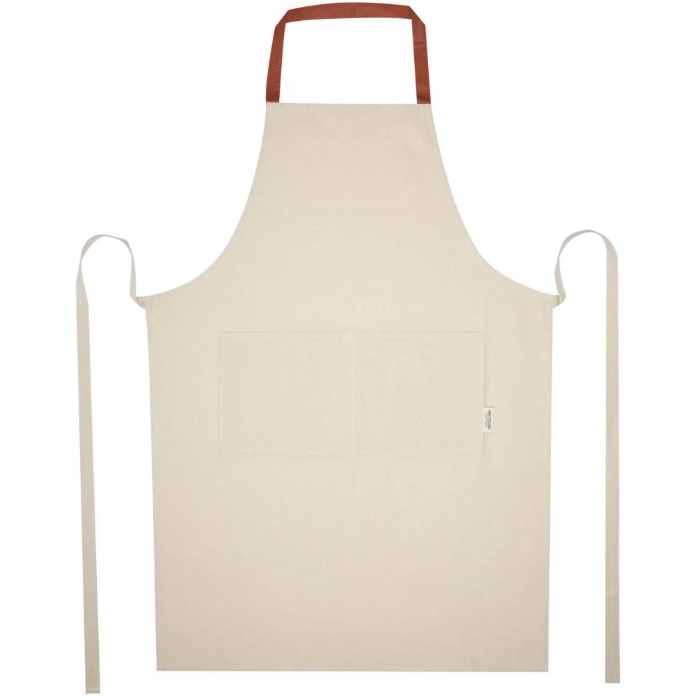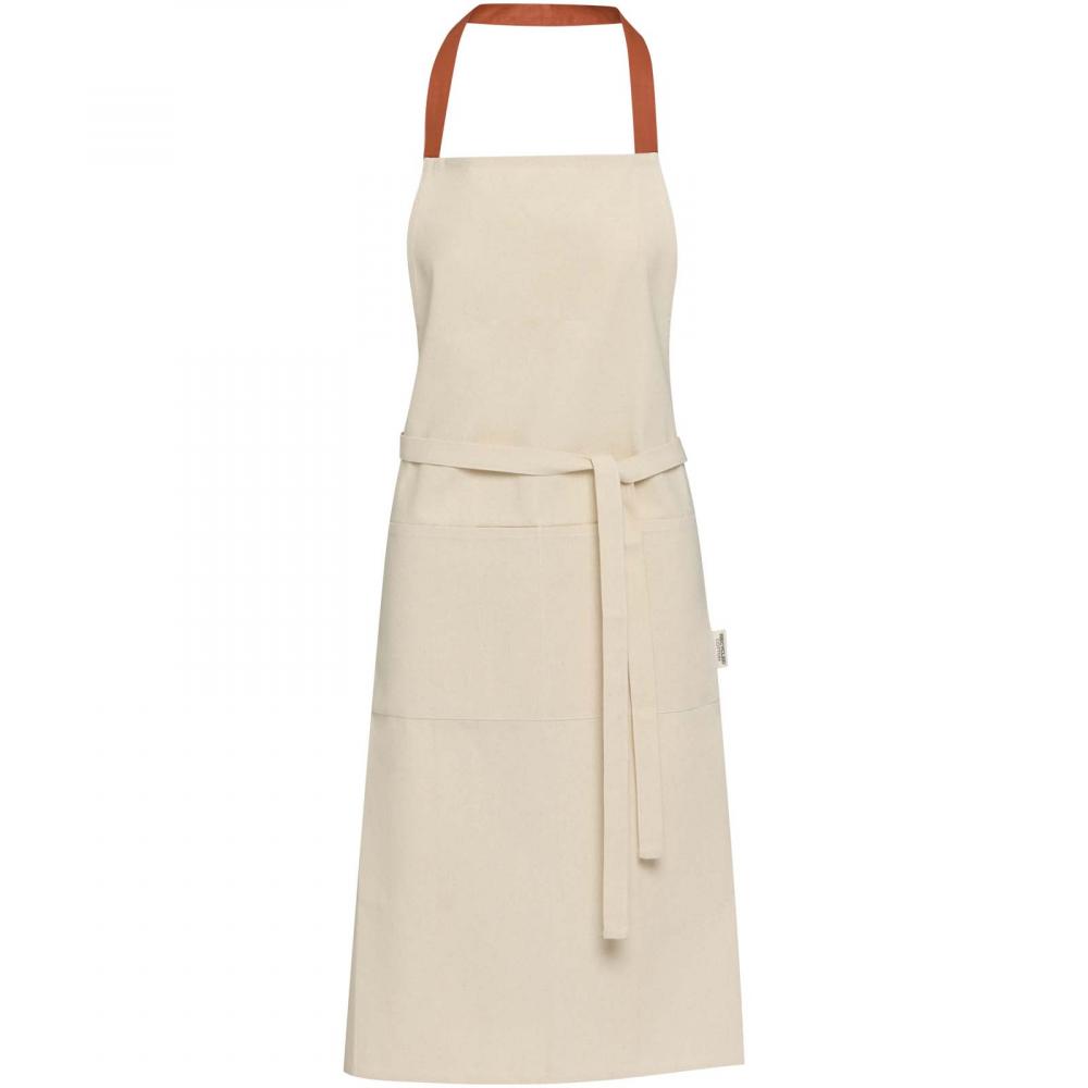 Фартук Nia изготовлен из 100% переработанного хлопка плотностью 200 г/м², сертифицированного по стандарту GRS. Благодаря своему натуральному цвету и контрастной шейной петле, этот фартук защитит вашу одежду во время готовки. Он оснащен двумя смежными карманами общим размером 45 x 20 см и завязками длиной 1 метр, что обеспечивает как практичность, так и стиль в ваших кулинарных начинаниях.