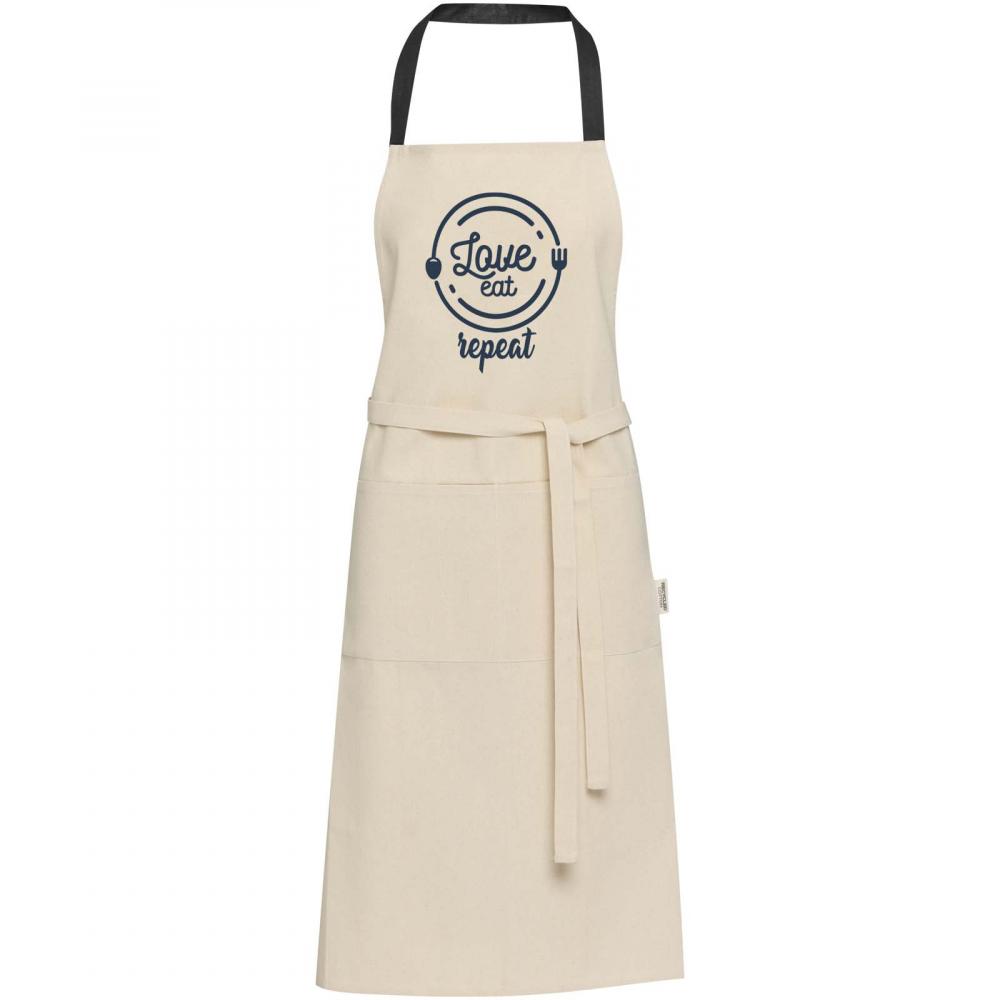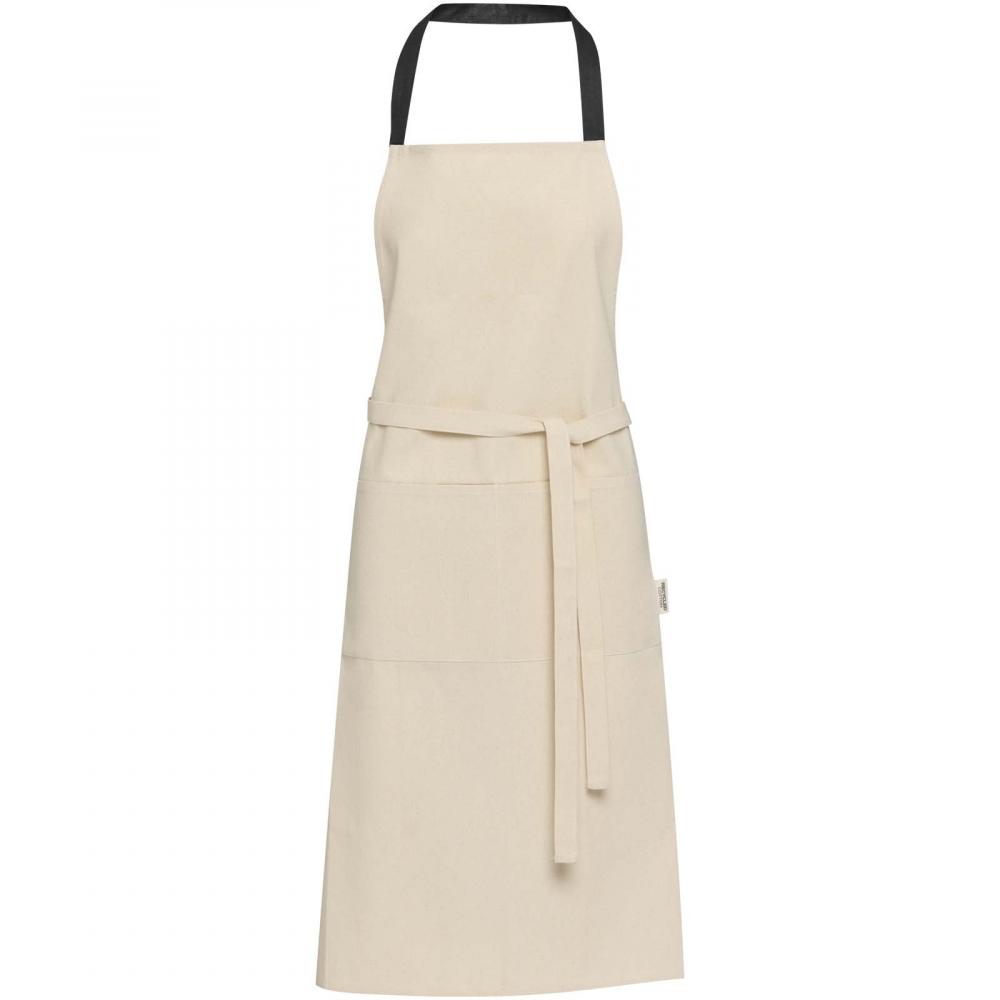 Фартук Nia изготовлен из 100% переработанного хлопка плотностью 200 г/м², сертифицированного по стандарту GRS. Благодаря своему натуральному цвету и контрастной шейной петле, этот фартук защитит вашу одежду во время готовки. Он оснащен двумя смежными карманами общим размером 45 x 20 см и завязками длиной 1 метр, что обеспечивает как практичность, так и стиль в ваших кулинарных начинаниях.