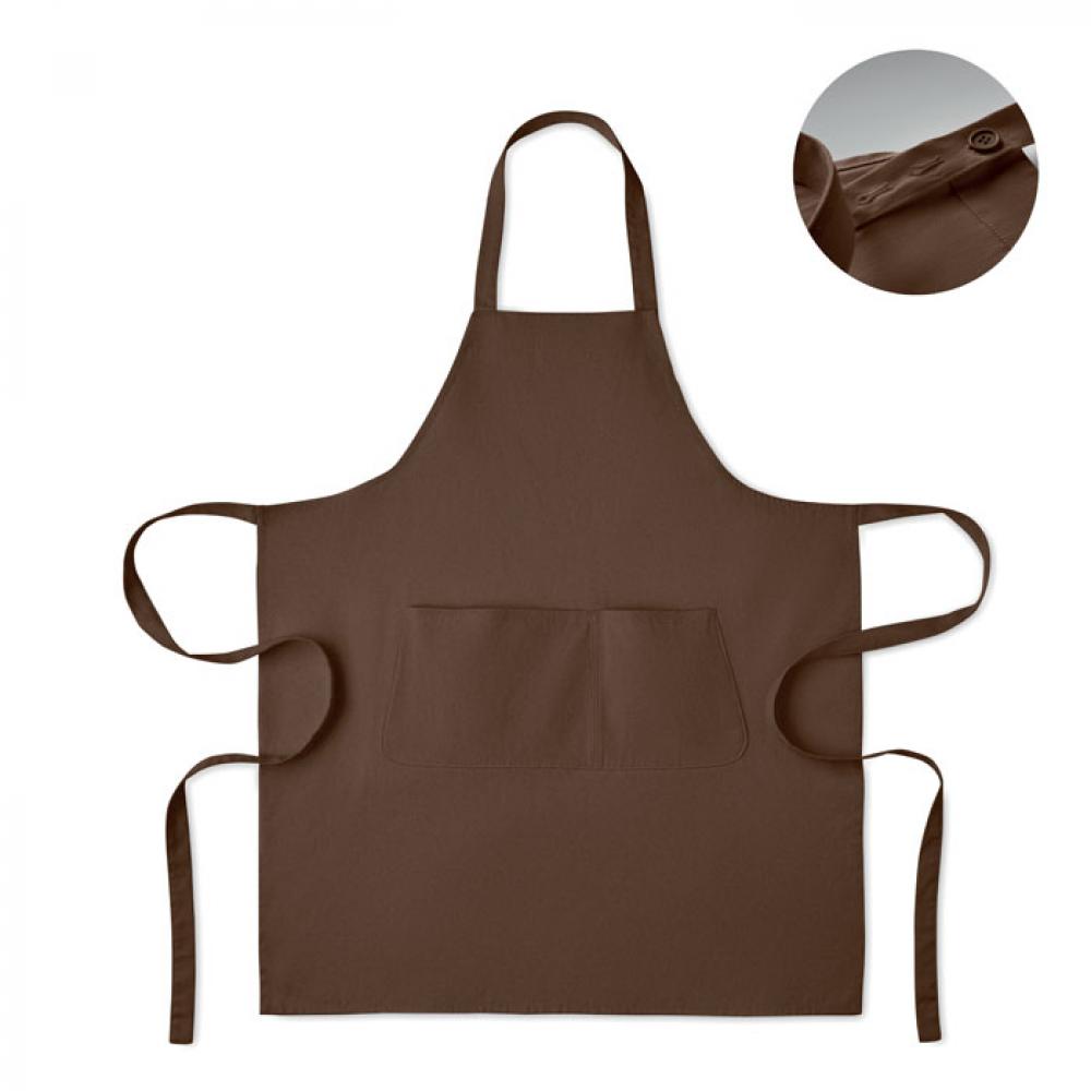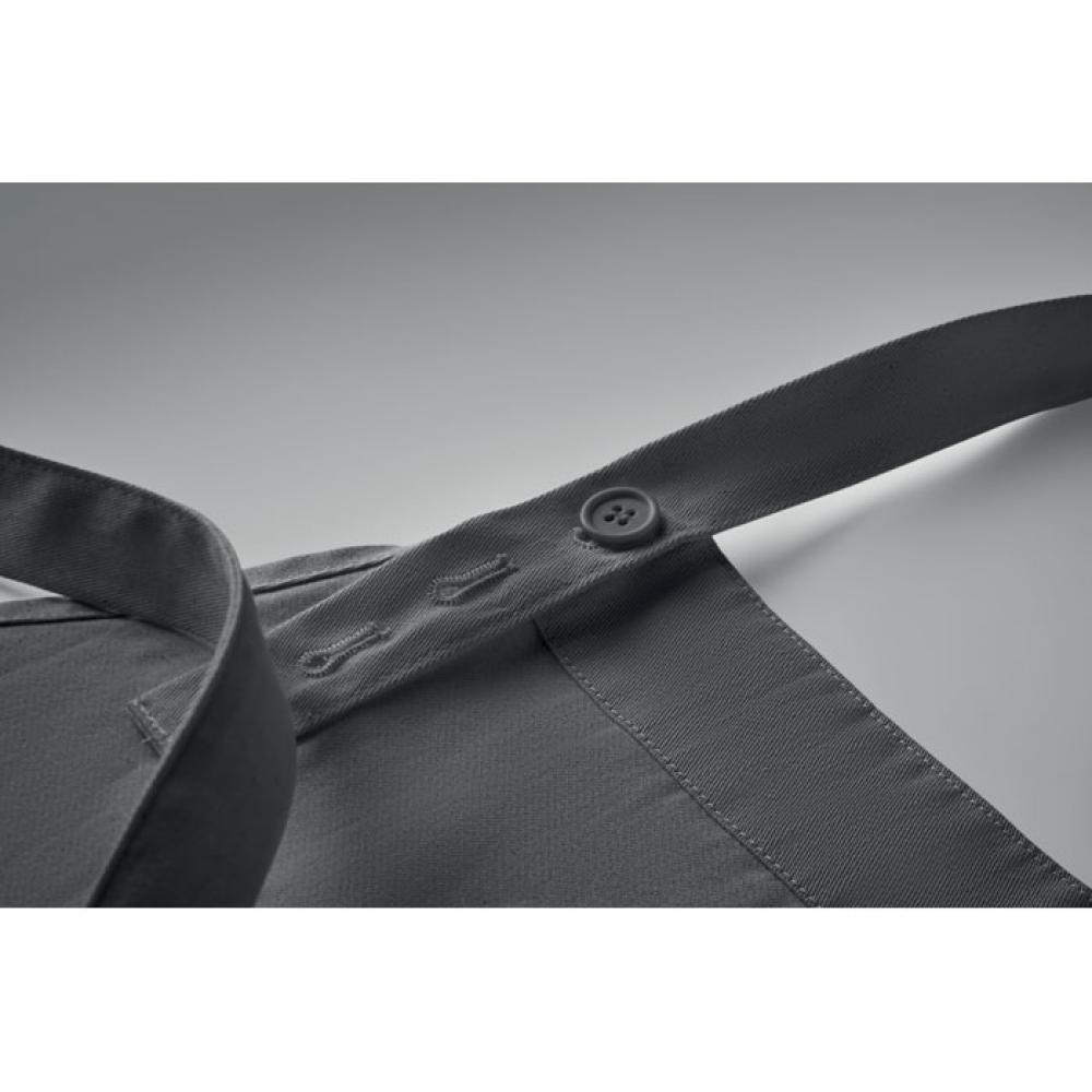 Кухонный фартук с большим передним карманом и двумя отделениями из органического хлопка плотностью 240 г/м². С регулируемым шейным ремешком.