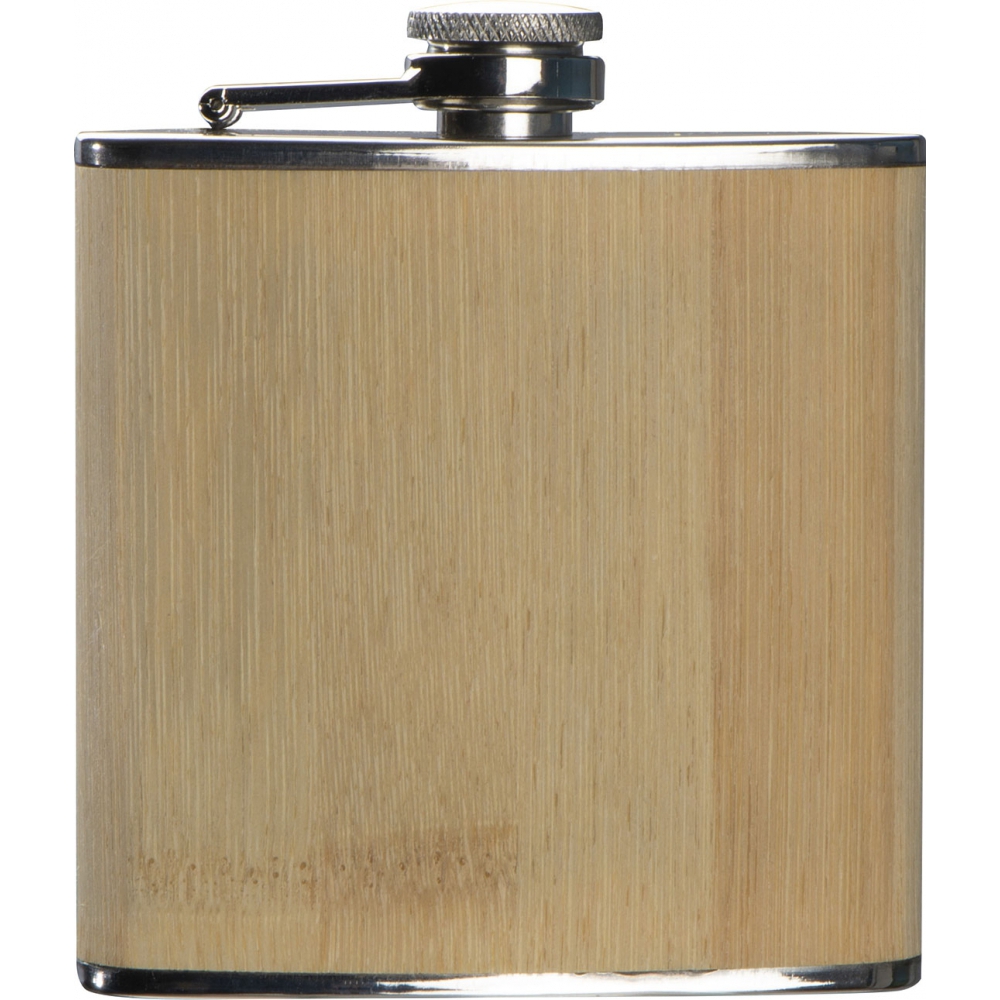 Фляга из нержавеющей стали в бамбуковом корпусе. Объем 170 мл.