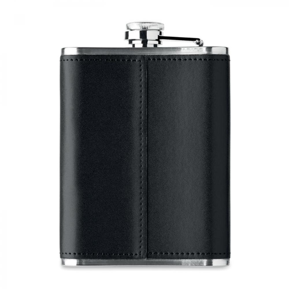 Плоская фляжка из нержавеющей стали с покрытием из искусственной кожи. Объем 200 мл.