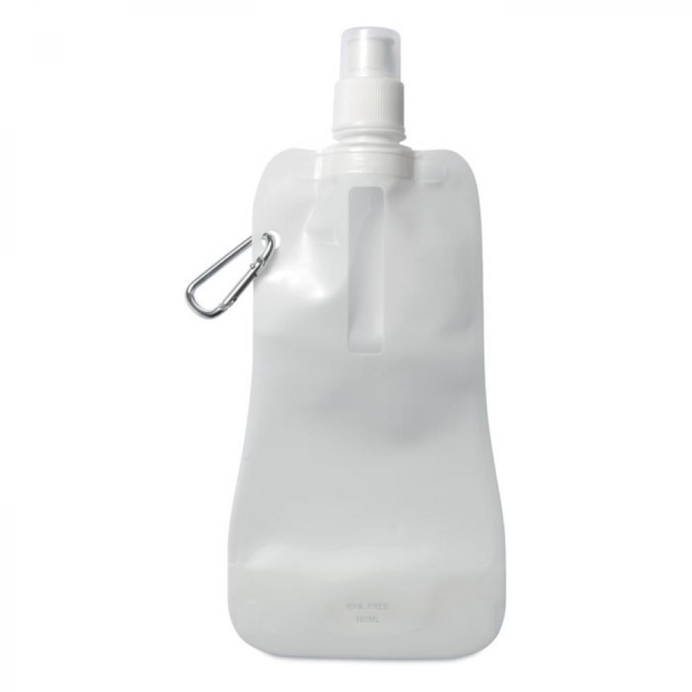 Полиэтиленовая бутылка для воды с алюминиевым карабином. Герметична.
