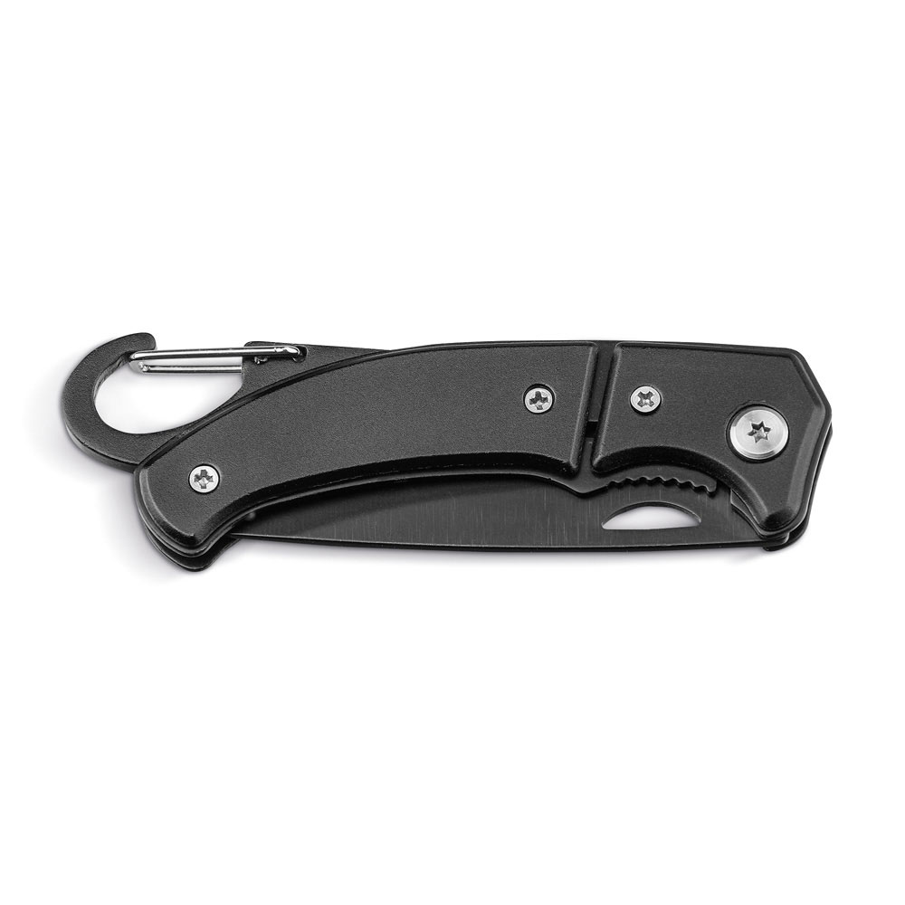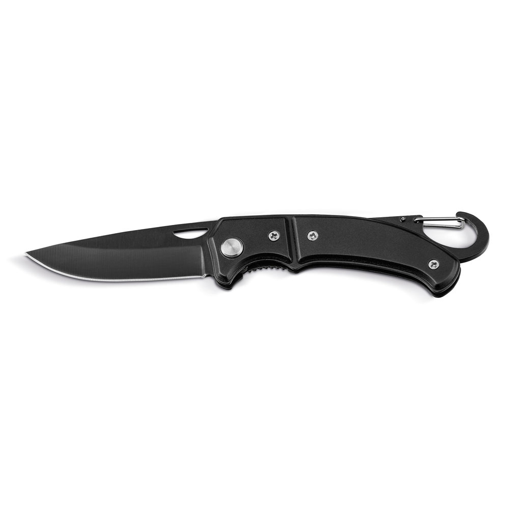 Карманный нож из нержавеющей стали и металла с карабином и предохранителем. 101 x 10 x 29 мм | Коробка: 108 x 39 x 15 мм