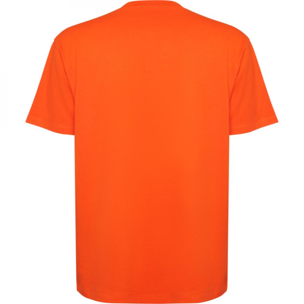 Футболка свободного кроя оверсайз с короткими рукавами. Круглый вырез горловины с отделкой резинкой 2x1 и оверлочными швами в тон. Боковые швы. Широкая двойная строчка на рукавах и по нижнему краю.