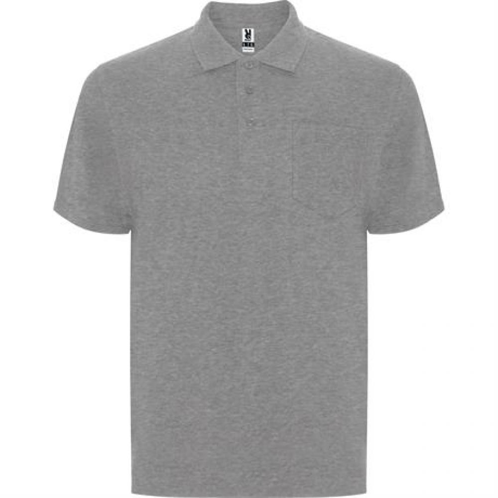 Футболка поло с короткими рукавами и карманом на левой стороне груди. Воротник и окантовка рукавов в рубчик 1 х 1 с объемным узором. Планка на 3 пуговицы. Усиленные закрытые швы горловины. *Отрывная этикетка.