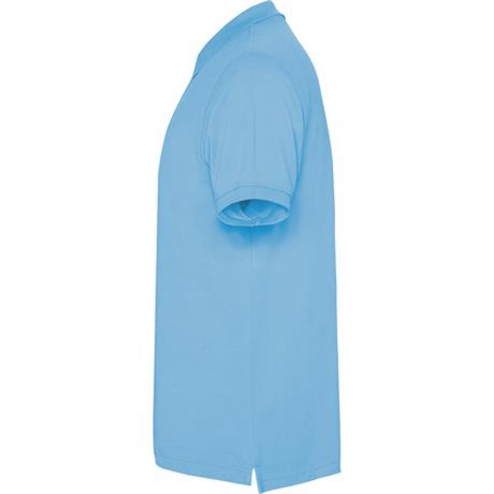 Мужская футболка поло с короткими рукавами, изготовленная из высококачественной комфортной ткани. Воротник с планкой на три пуговицы в тон ткани. Лацканы воротника и окантовка рукавов в рубчик. Усиленные закрытые внутренние швы горловины. Боковые разрезы