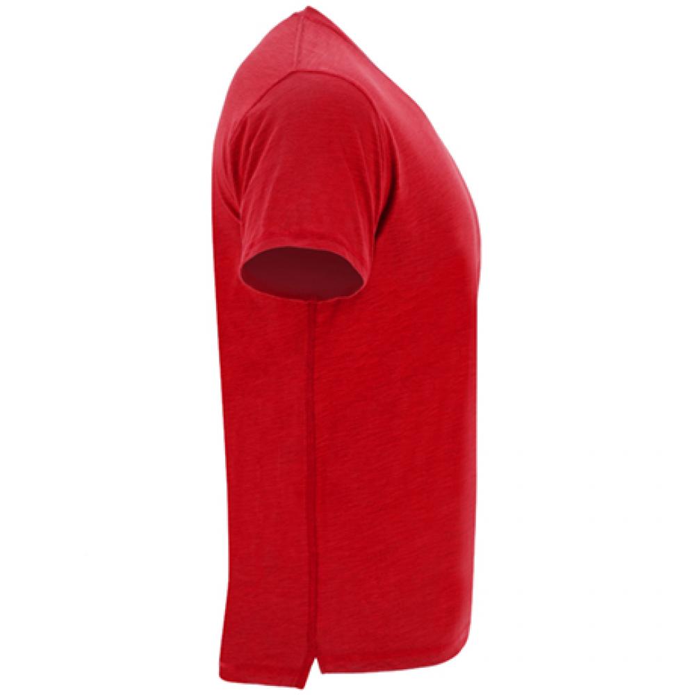 Футболка с короткими рукавами меланжевого цвета и асимметричным низом. Круглая горловина из той же ткани, украшенная оверлочным швом. Контрастные закрытые внутренние плечевые швы. Боковые швы, украшенные оверлочным швом. Боковые разрезы снизу. Спинка немного длиннее переда.
