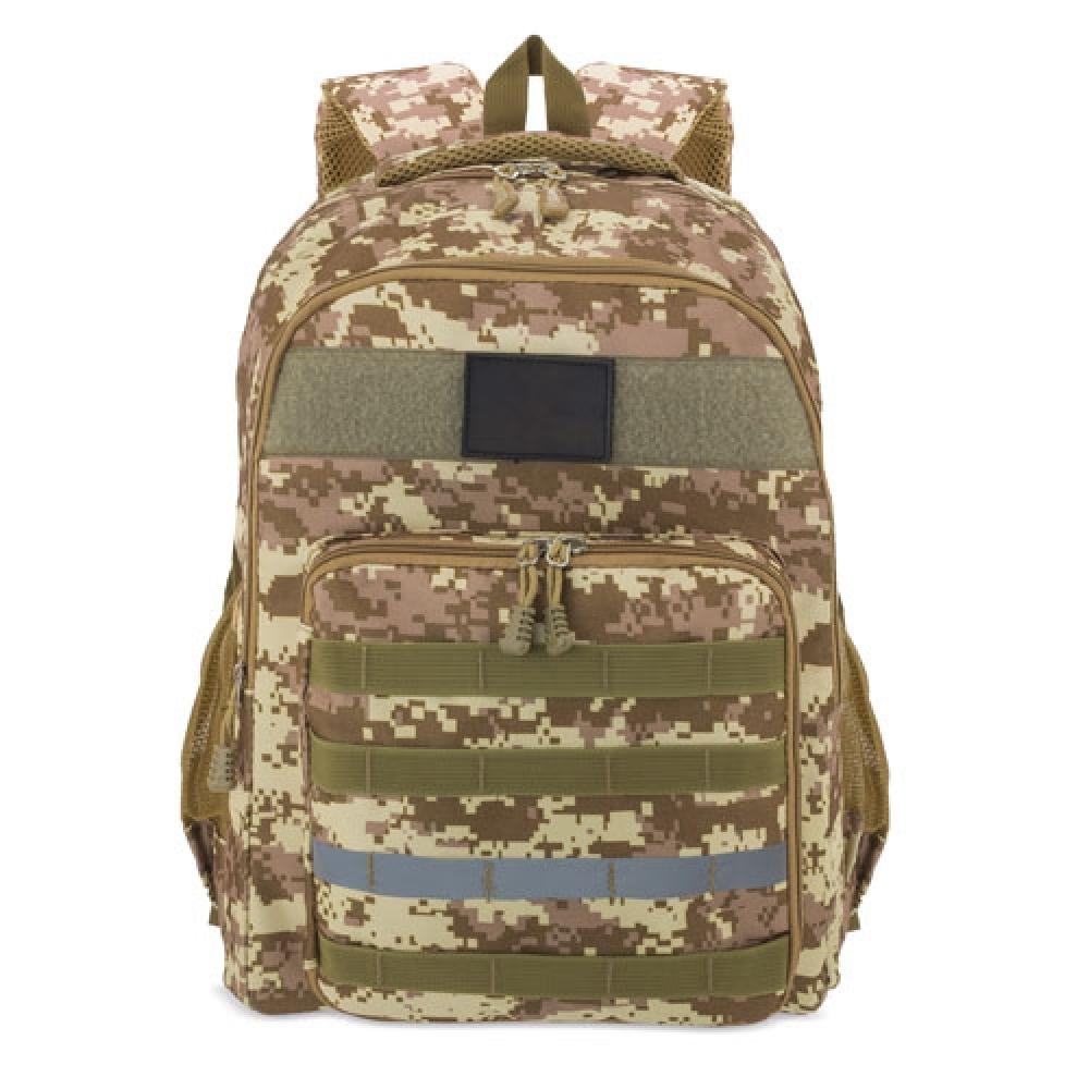 Полностью камуфлированный тактический рюкзак с тремя отделениями для переноски всего необходимого для ваших активных занятий на свежем воздухе. Мягкая внутренняя часть и плечевые ремни, усиление спереди и сзади с отражающей лентой.