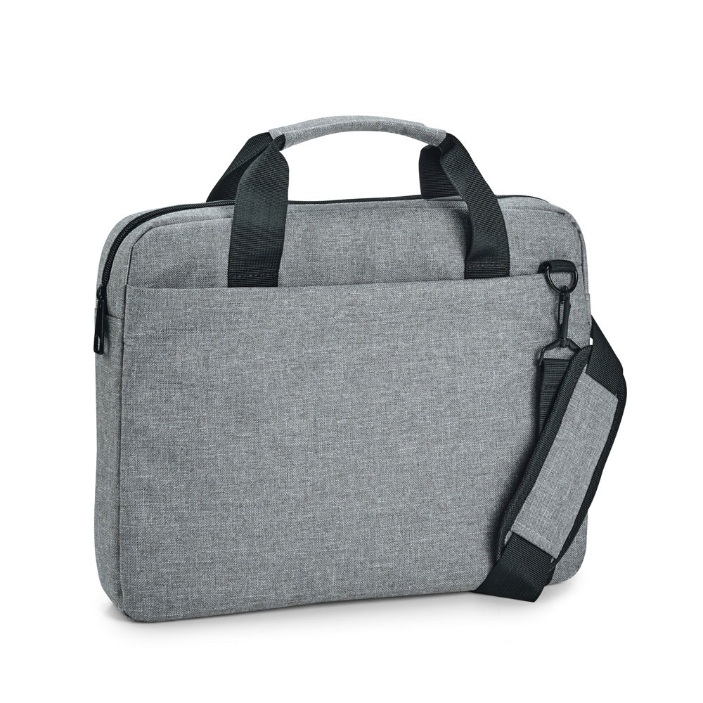 Сумка для ноутбука из 600D высокой плотности, с внутренней подкладкой и набивкой а также отделением для ноутбука до 14''. В сумке есть передний карман, регулируемые плечевые шлейки с набивкой и ремень крепления к чемодану. 370 x 280 x 50 мм