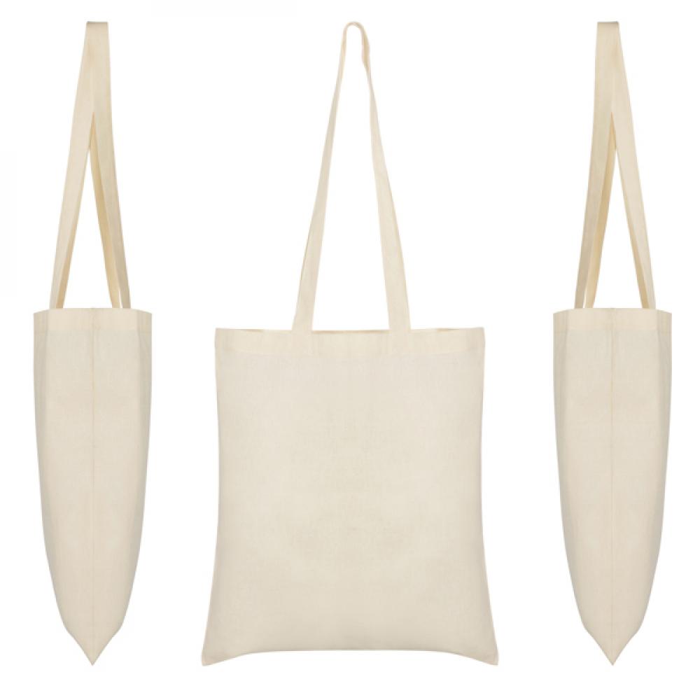 Сумка из хлопка натурального цвета, с двумя длинными ручками того же цвета.