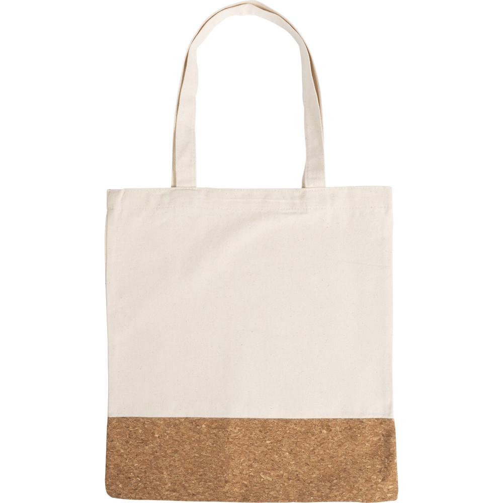 Хлопковая сумка-шоппер с длинными ручками (58 см), пробковые элементы