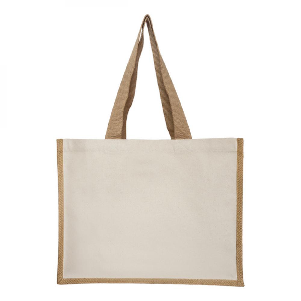 Хозяйственная сумка с длинными ручками, изготовленная из хлопка 280 г/м2 и джута.